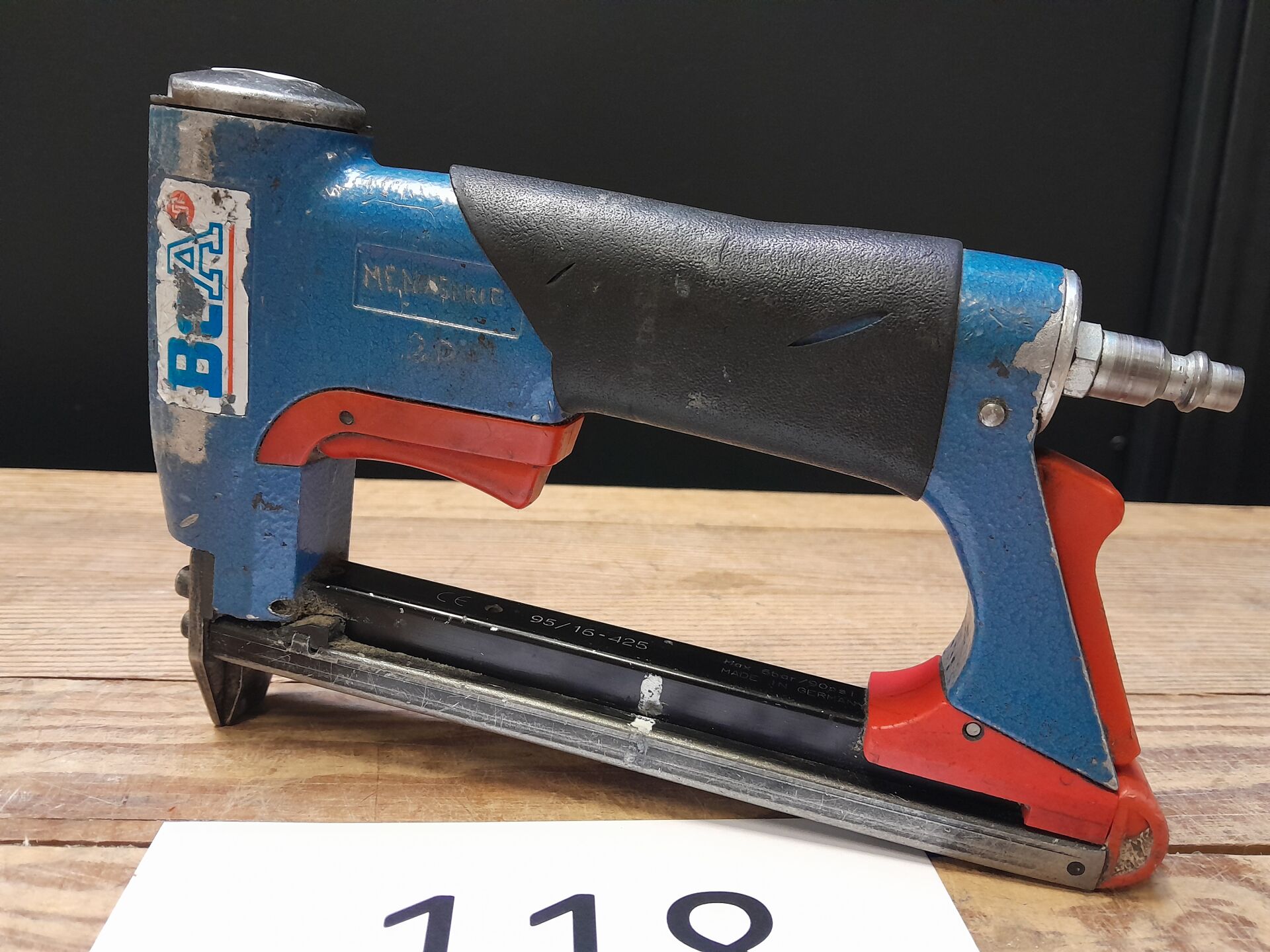 1 agrafeuse pneumatique bec court modèle 95/16-425 de marque BEA Dimensions : 22 x 3,5 x 14 cm n/s 17325/2