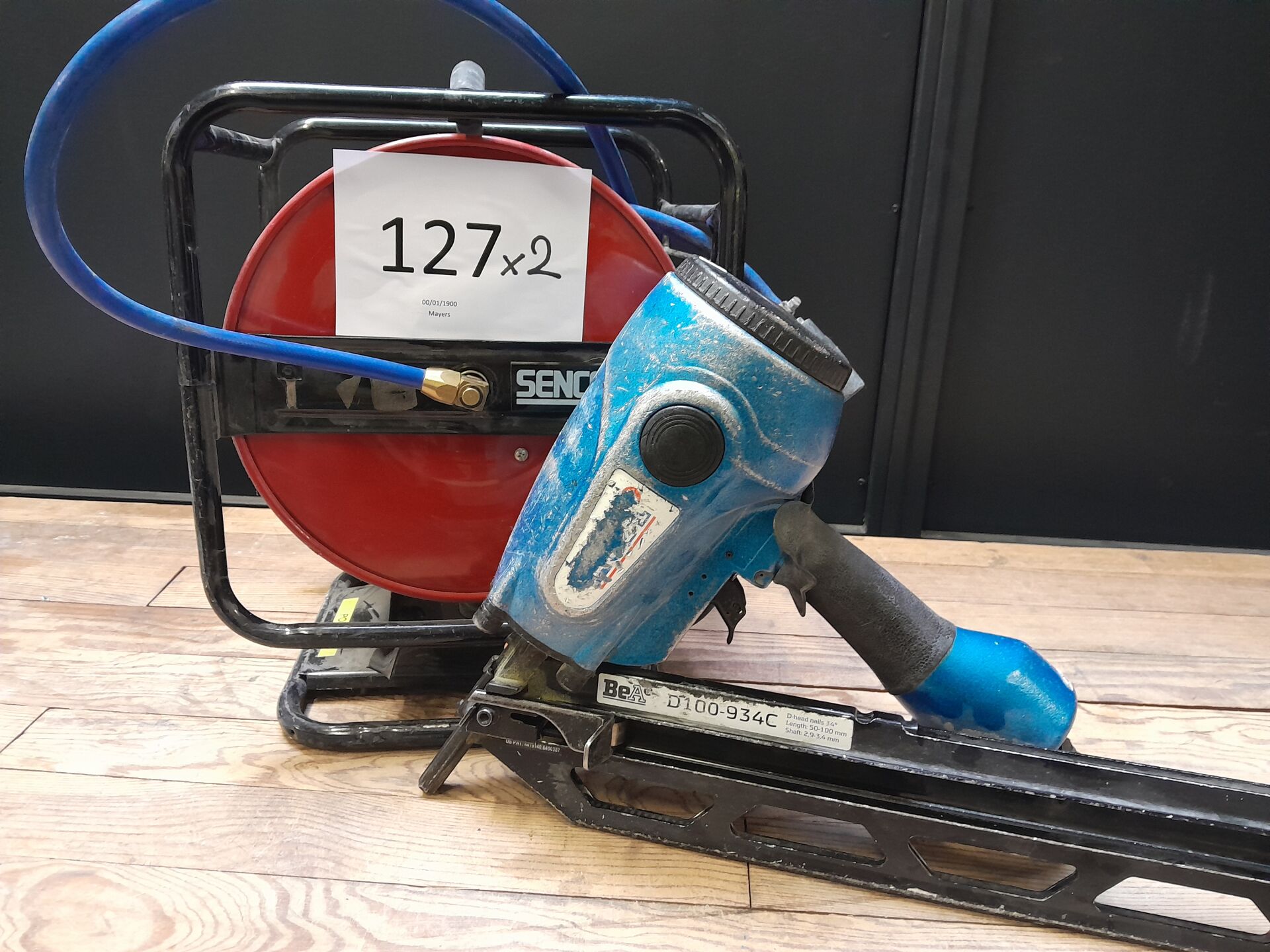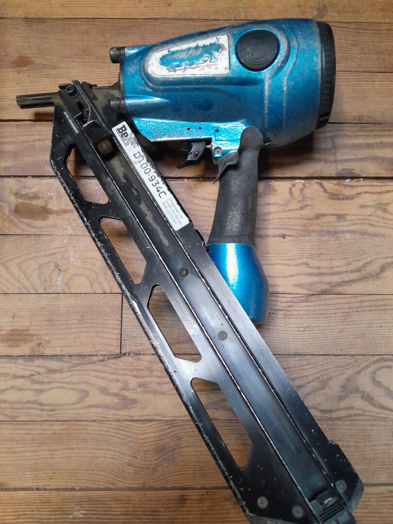 1 ensemble comprenant 1 cloueur pneumatique modèle D100-934C de marque BEA dimensions 500 x 114 x 360 mm ainsi que 1 enrouleur tuyau d'air de 30 metres avec raccord de marque SENCO n/s 21060095 -ISI 061806