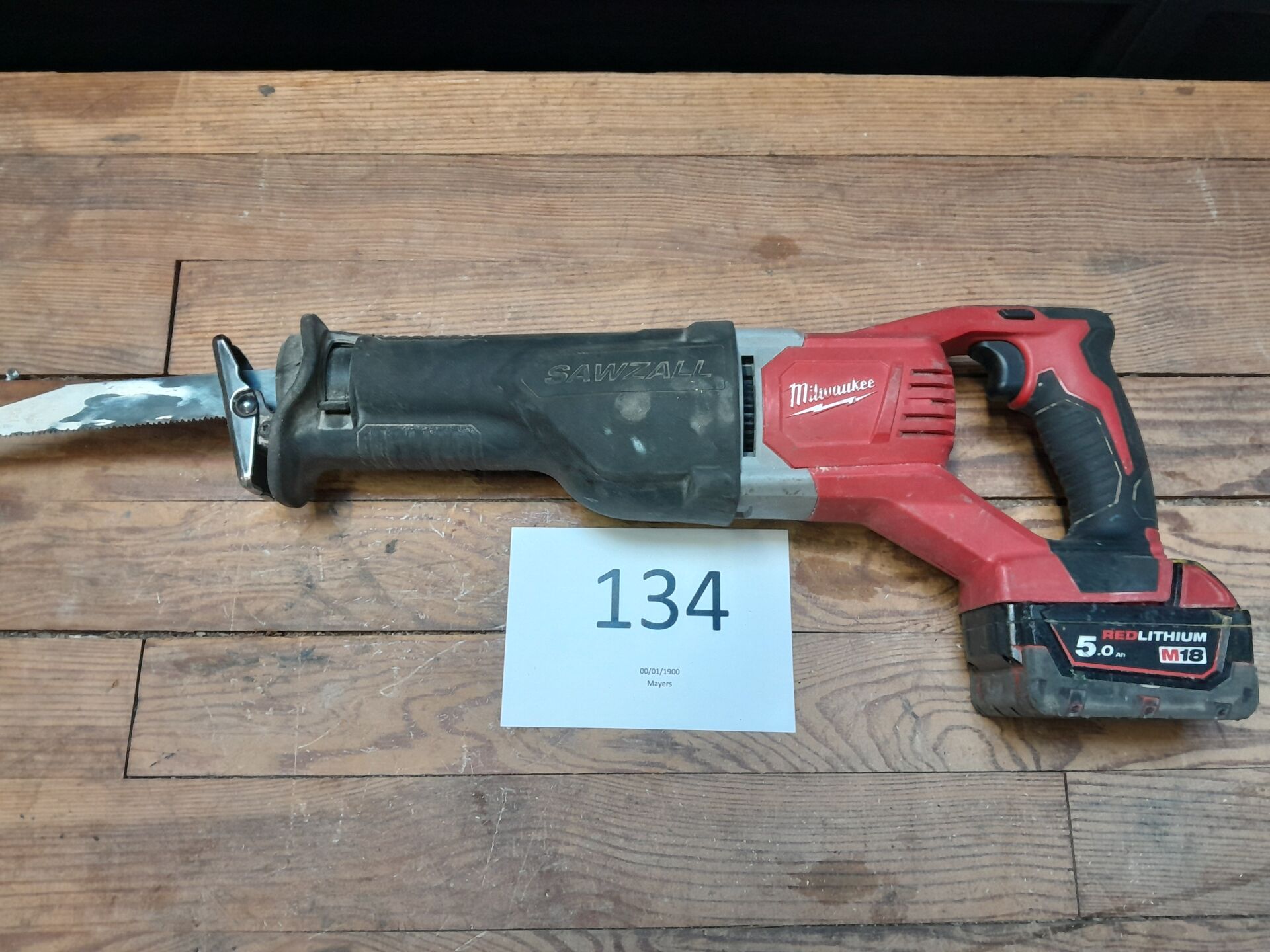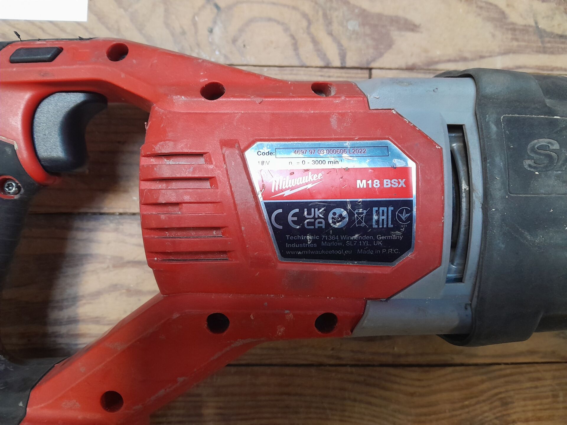 1 scie sabre autonome modèle M18 BSX de marque MILWAUKEE avec une batterie red lithium M 18 B 5 sans chargeur N/ S 13624182 -13635539