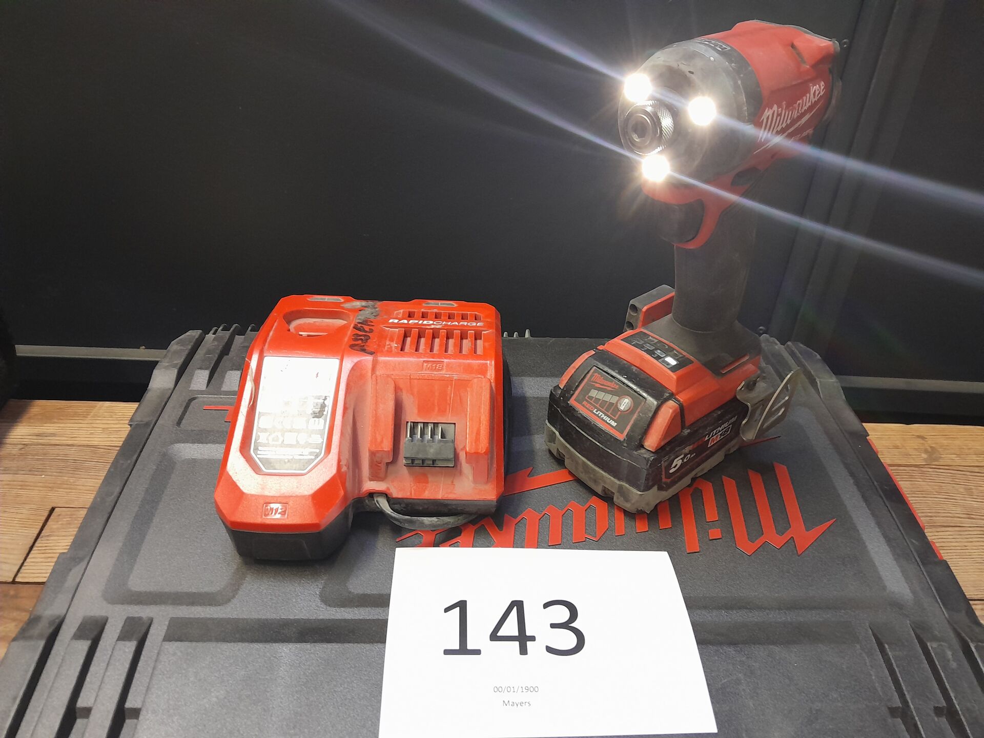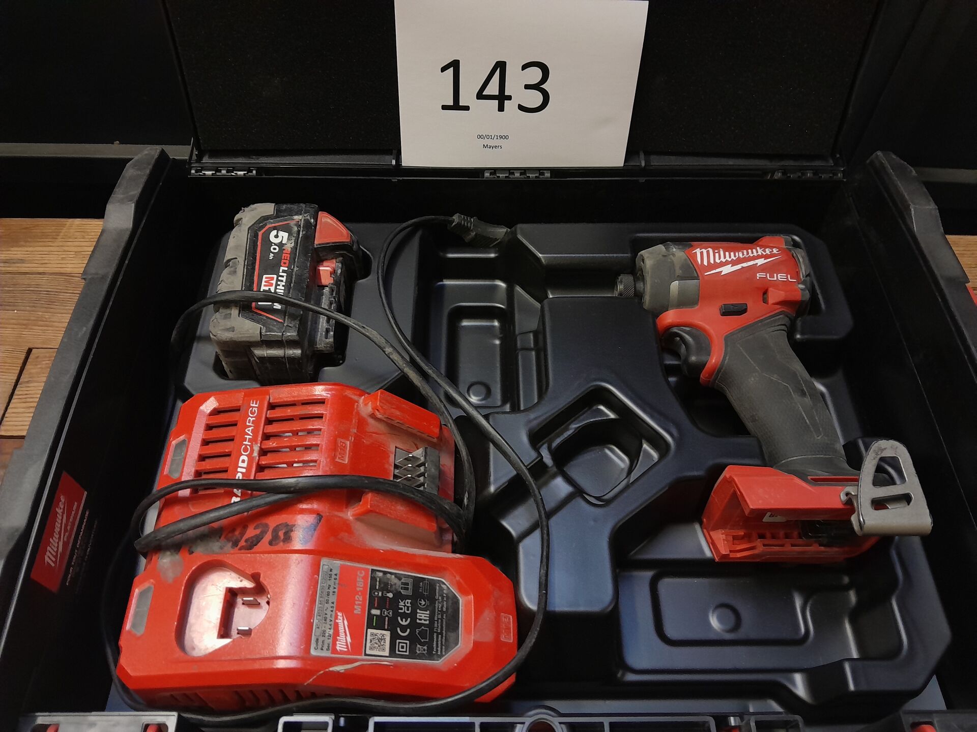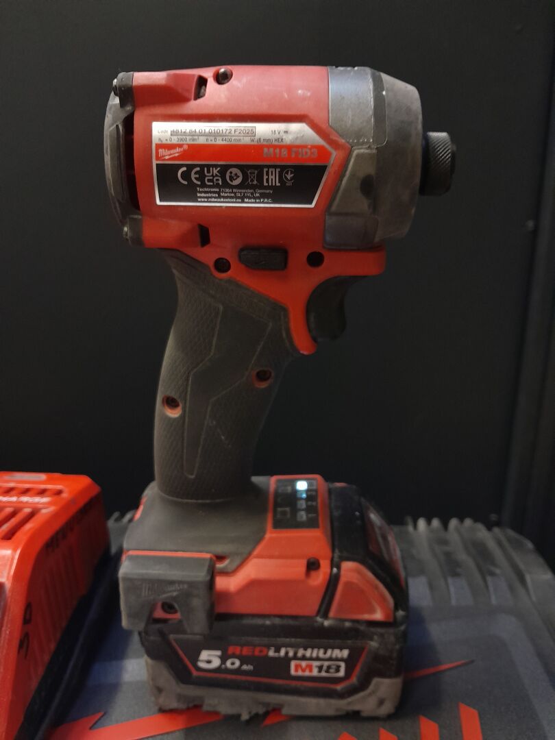 1 visseuse à choc autonome modèle M18 FID3 de marque MILWAUKEE en coffret avec 1 chargeur rapide modèle M12 - 18 FC ainsi qu' une batterie Red Lithium modèle M18 5, n/s 20178592 - 1363505 - 15231180