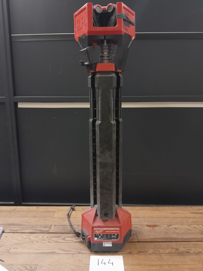 1 projecteur de chantier hybride ( filaire ou batterie ) avec trépied modèle M18 HOSALC-0 solo de marque MILWAUKEE sans batterie ni chargeur; on note un accrochage sur le fil d'alimentation, n/s 13524214
