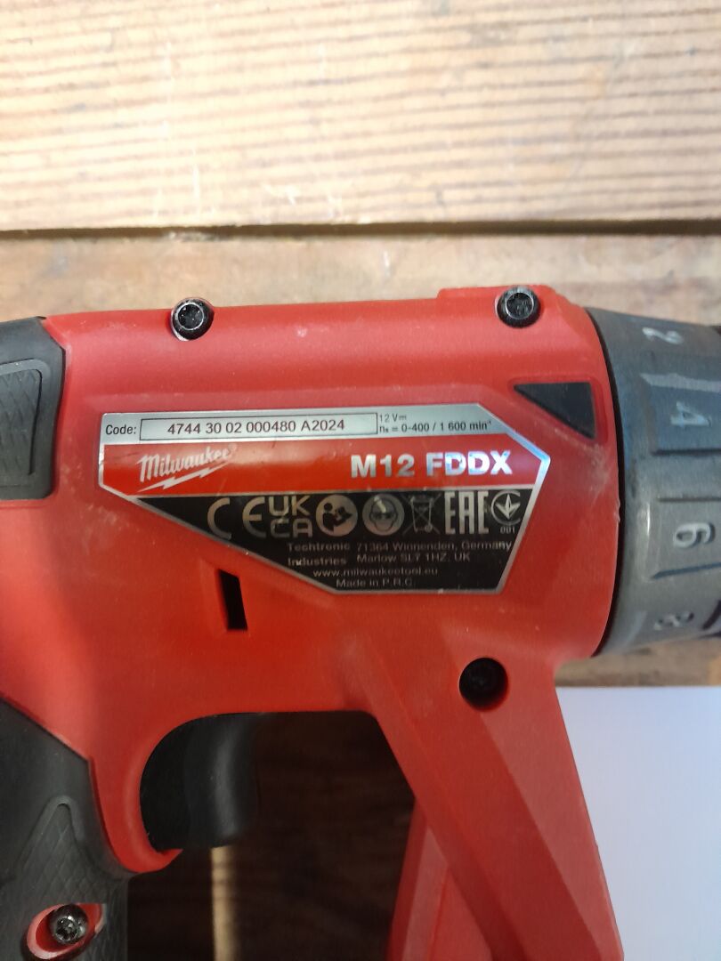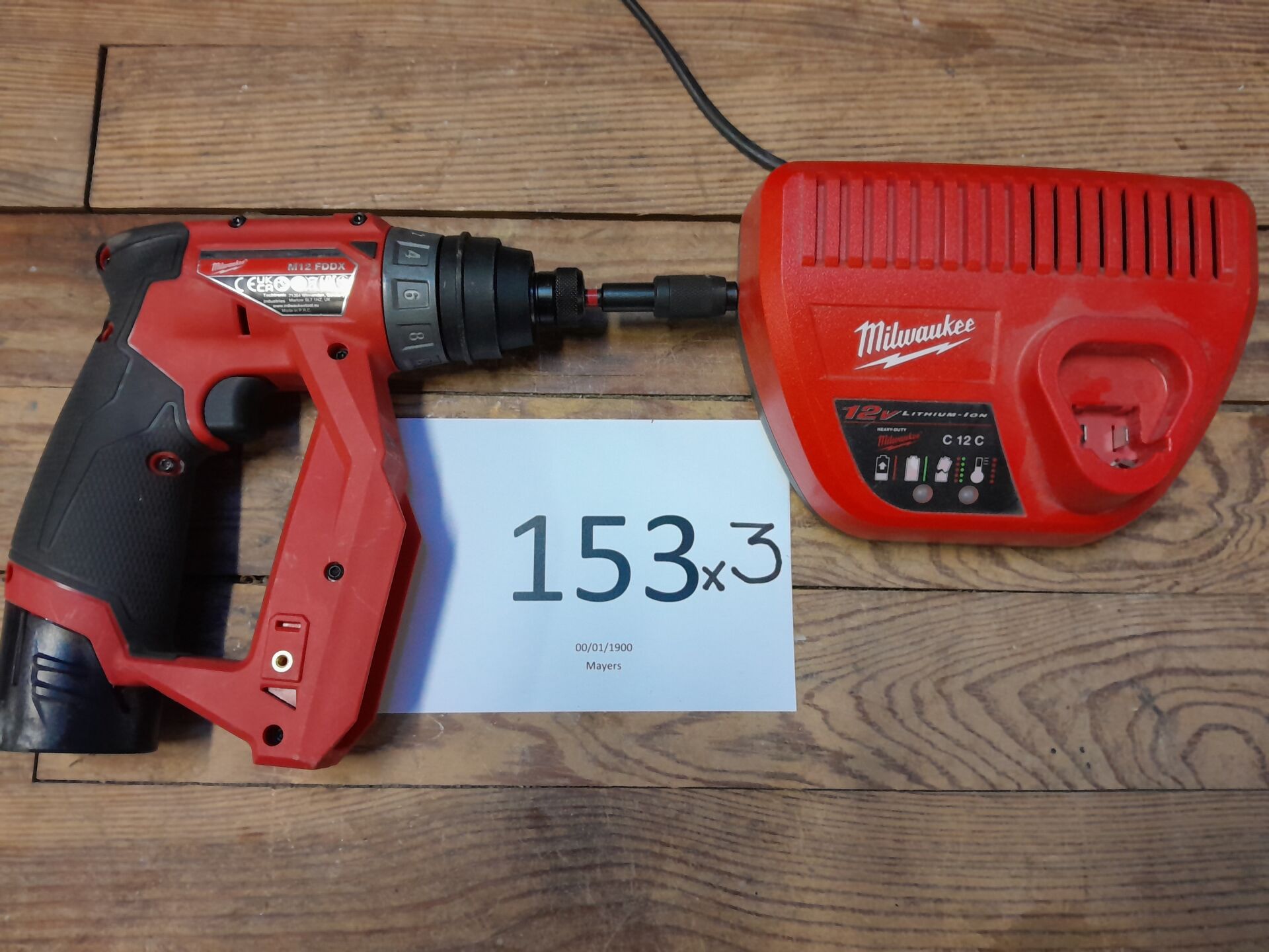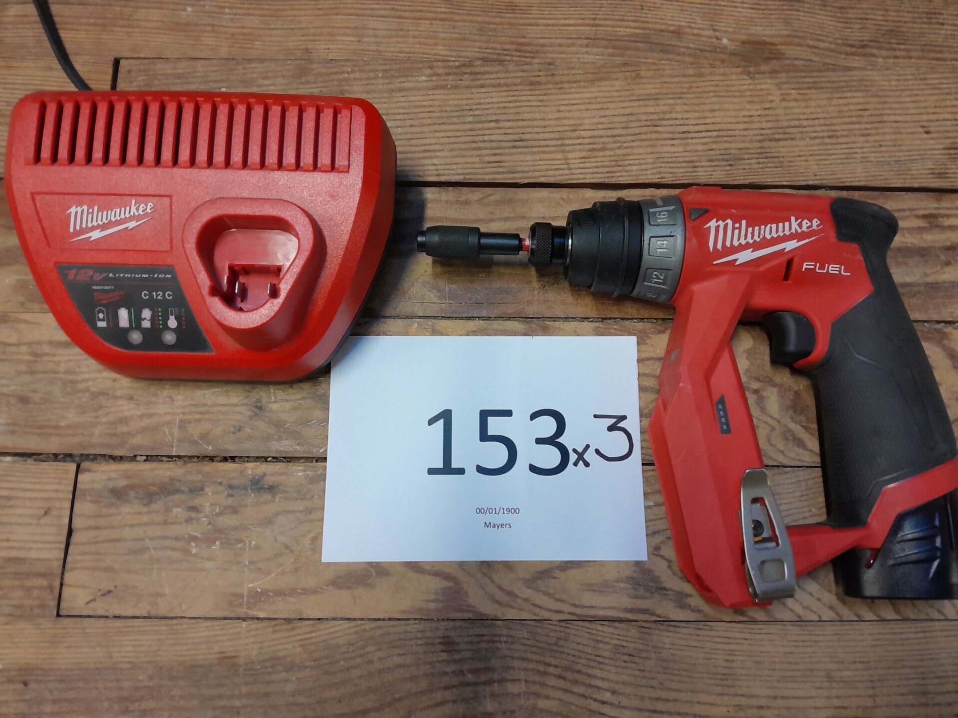 1 perceuse visseuse autonome à mandrin amovible modèle M12 FDDX avec une batterie M 12 B2 ainsi qu'un chargeur modèle C 12 C le tout de marque MILWAUKEE, n/s 17024272 - 13634854 - 15534754