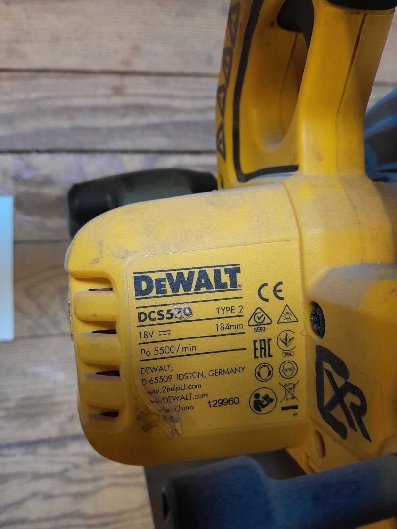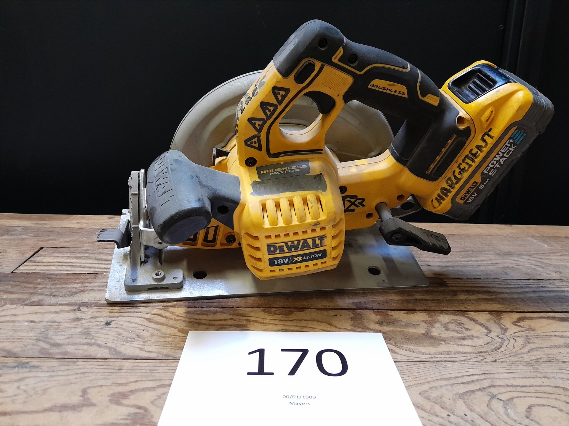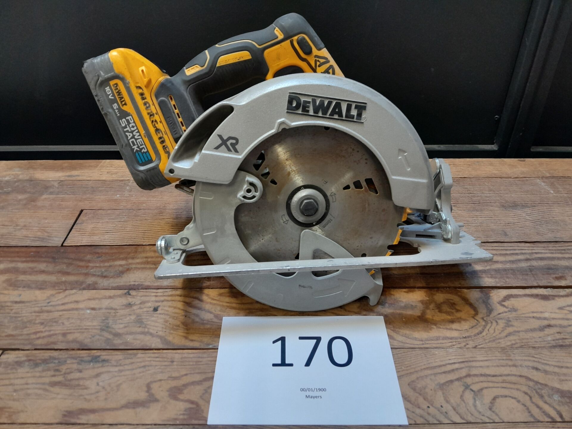 1 scie circulaire autonome mod. DCS570 de marque DEWALT avec 1 batterie model POWER STACK 18 V 5 AH sans chargeur N/S 129960