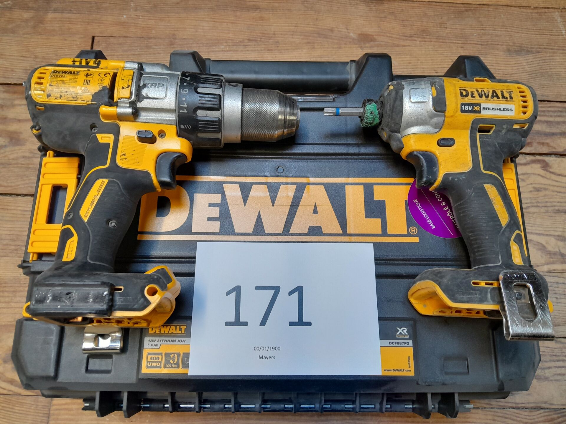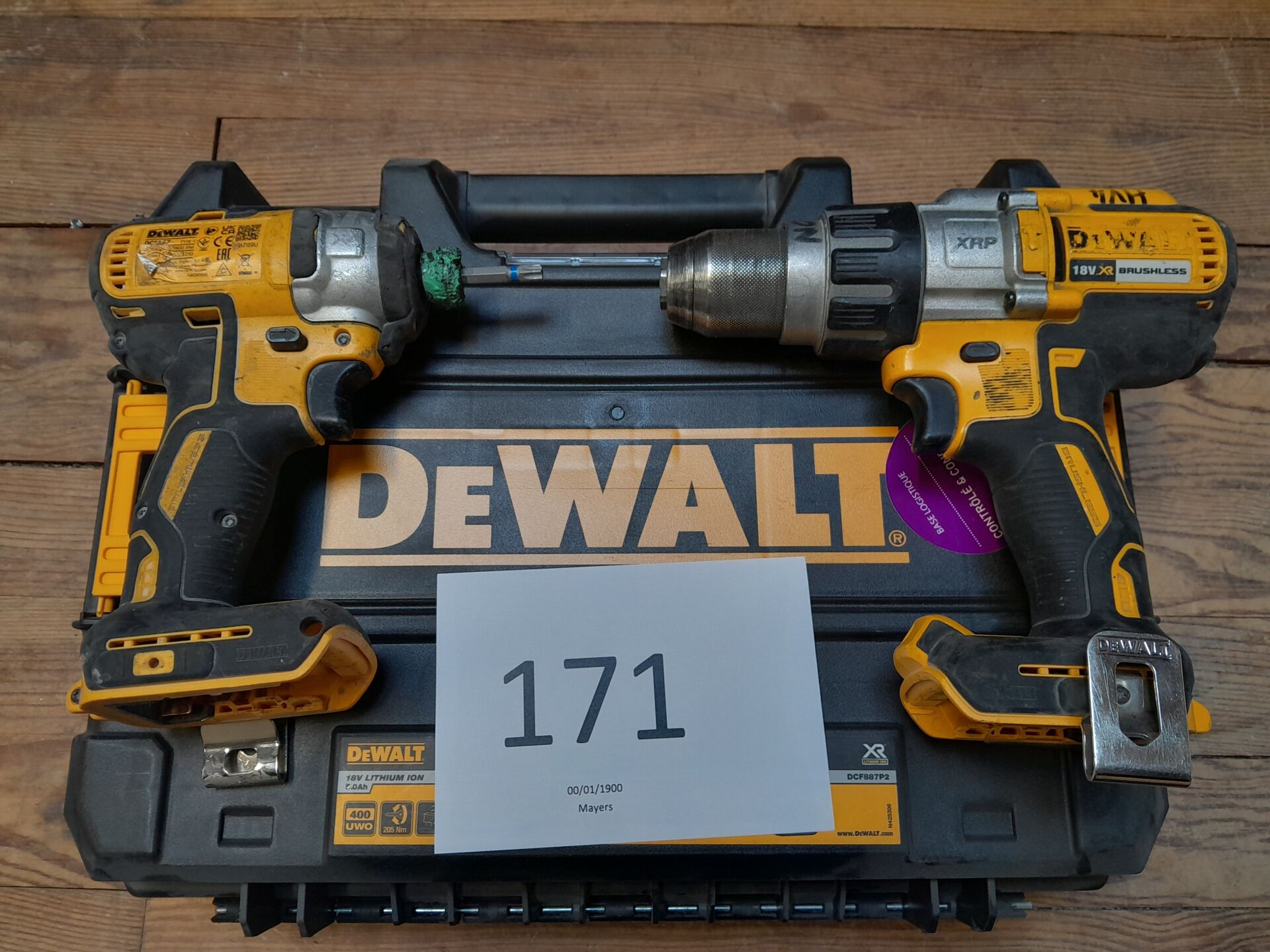 1 ensemble comprenant 1 perceuse à percussion autonome mod. DCD996 ainsi qu'1 visseuse à choc mod. DCF887 le tout de marque DEWALT dans un coffret sans batterie ni chargeur, N/S WOGTHFY +illisible ou non renseigné