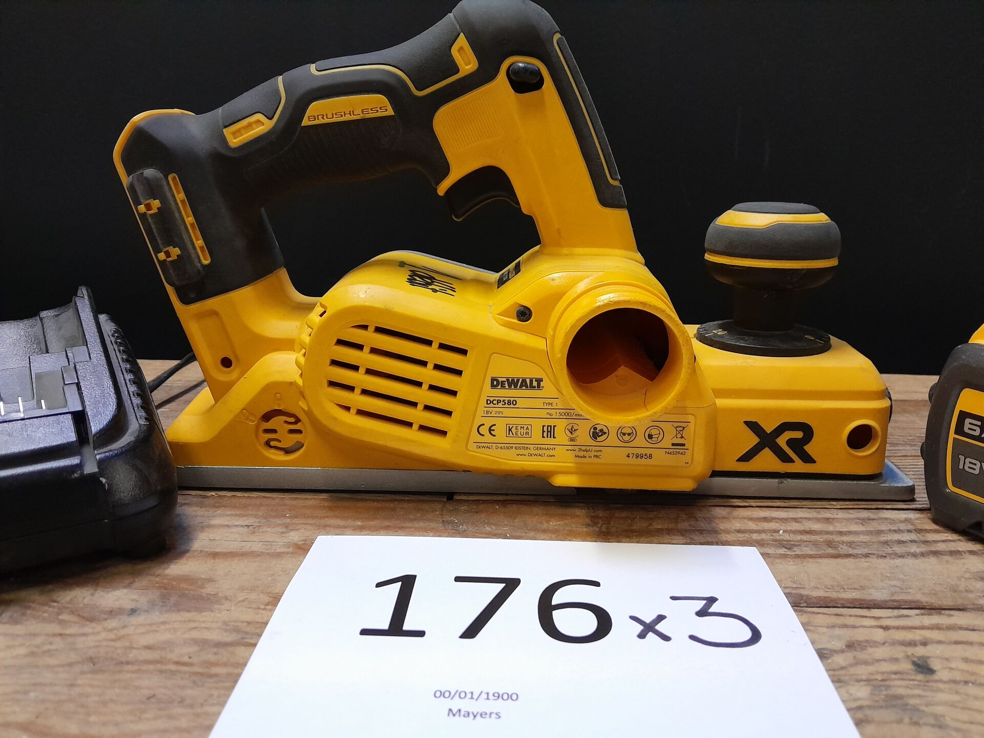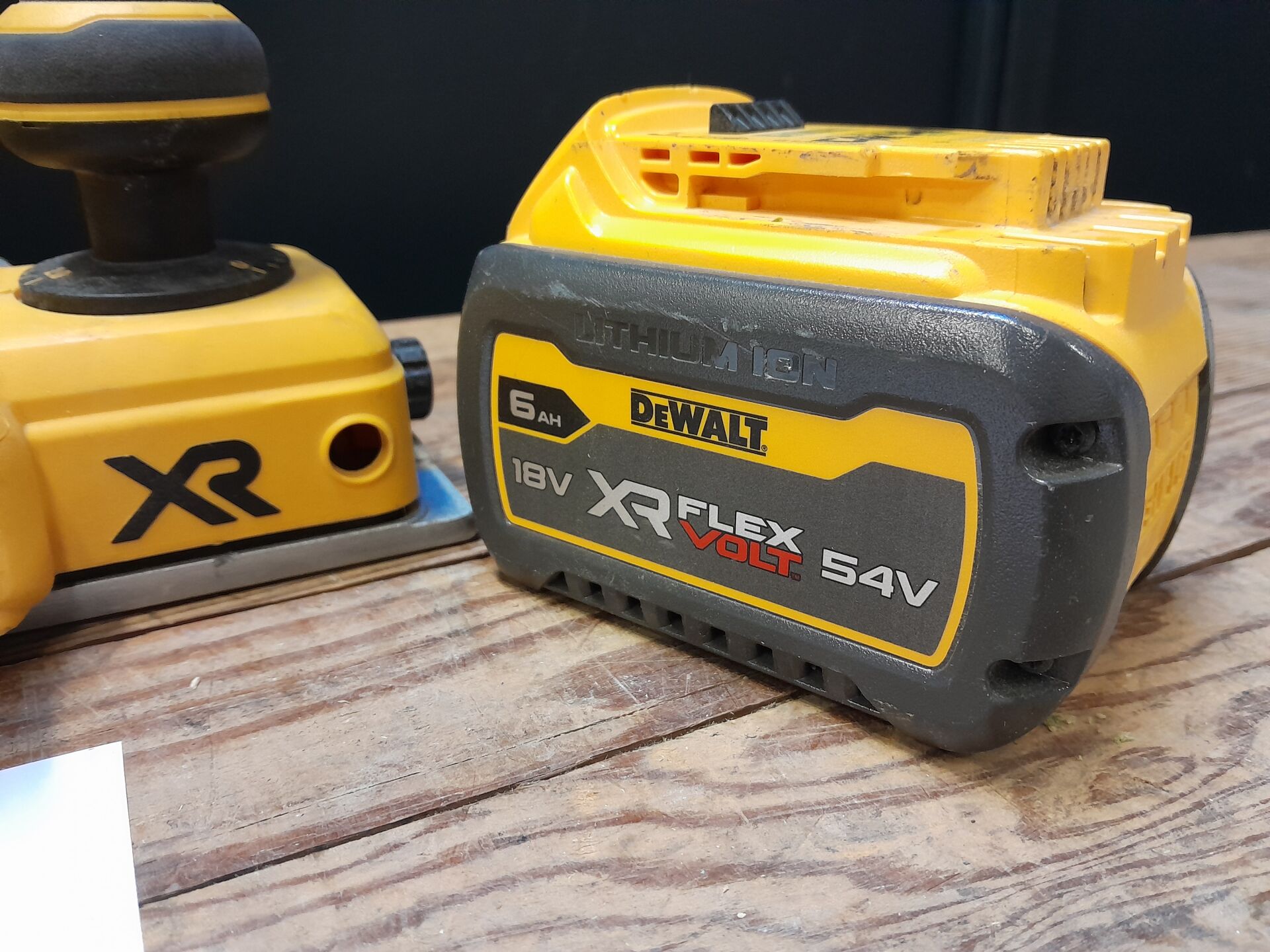 1 rabot autonome mod. DCP580 avec 1 batterie mod. XR FLEX VOLT 18 V 54 V 6 AH avec 1 chargeur mod. DCB115 le tout de marque DEWALT, n/s DCP580 TY1