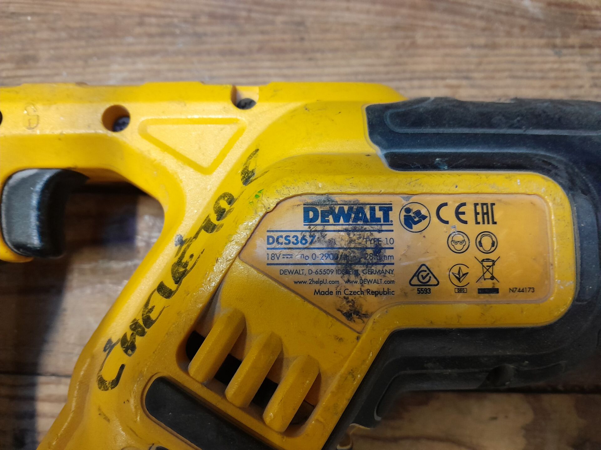 1 scie sabre compact autonome mod. DCS367 de marque DEWALT sans chargeur ni batterie, n/s illisible ou non renseigné