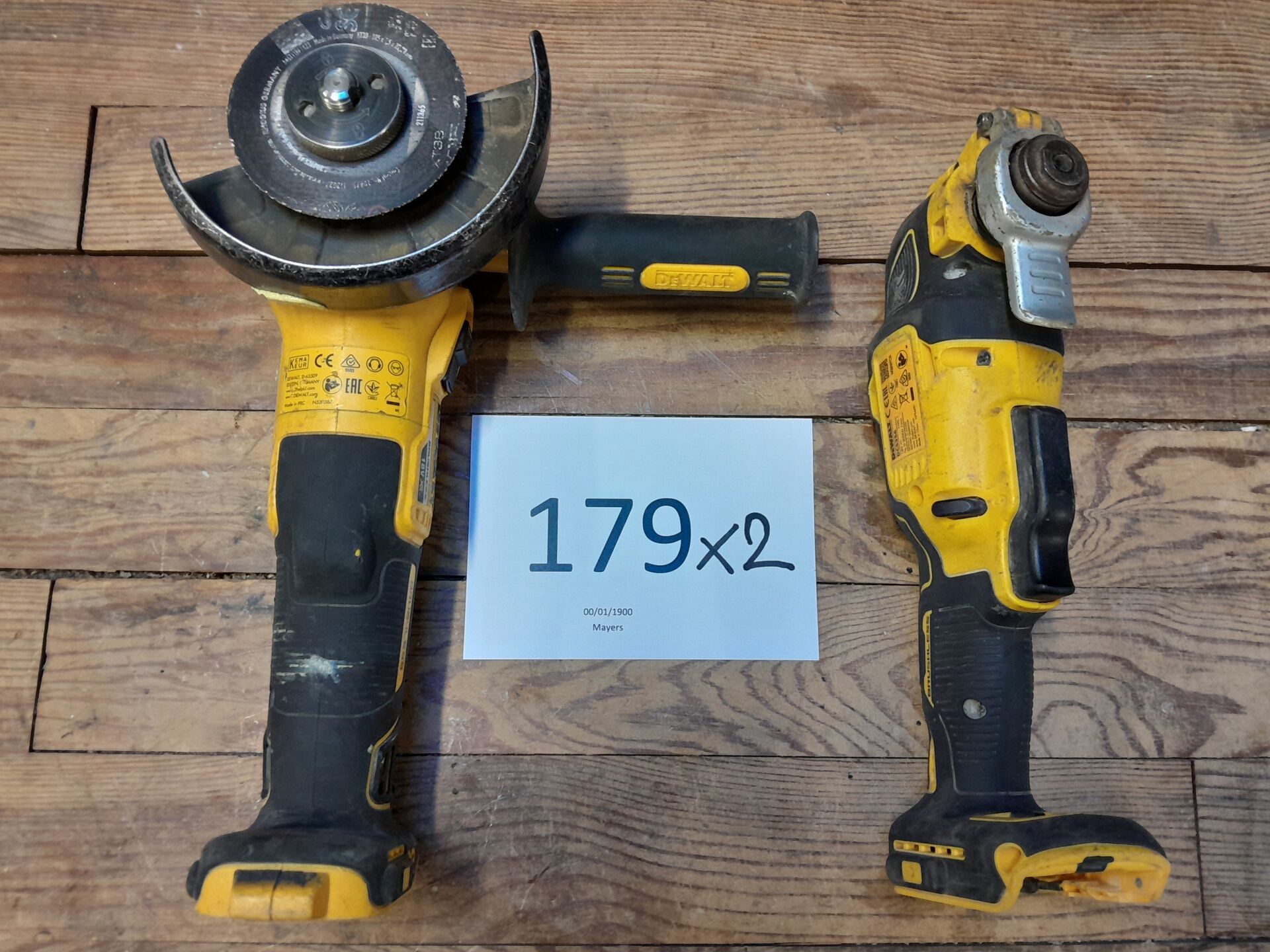 1 ensemble constitué 1 meuleuse d'angle mod. DCG405 , 1 outil multifonction autonome mod. DCS356 le tout de marque DEWALT sans batterie ni chargeur, n/s illisible ou non renseigné