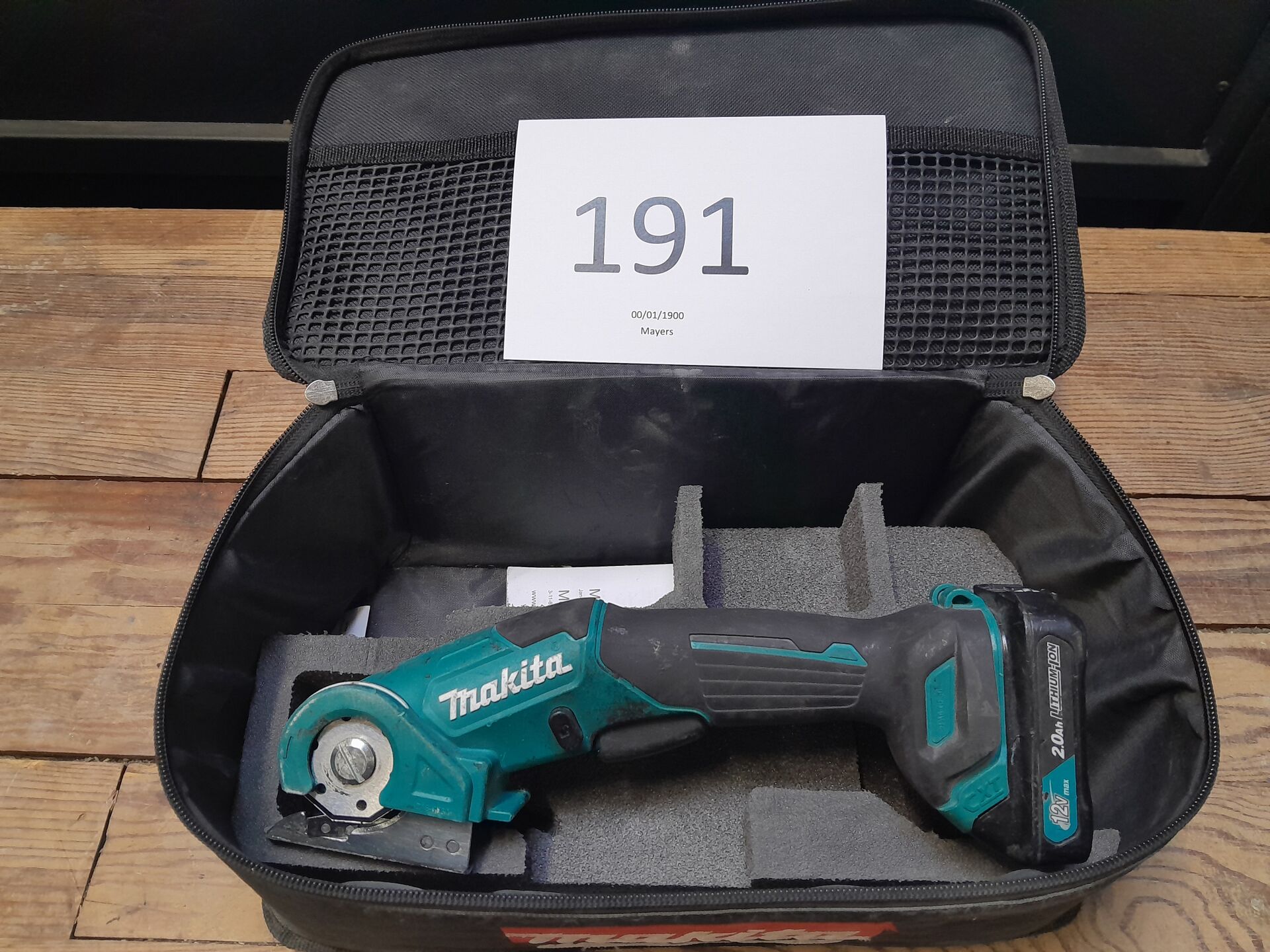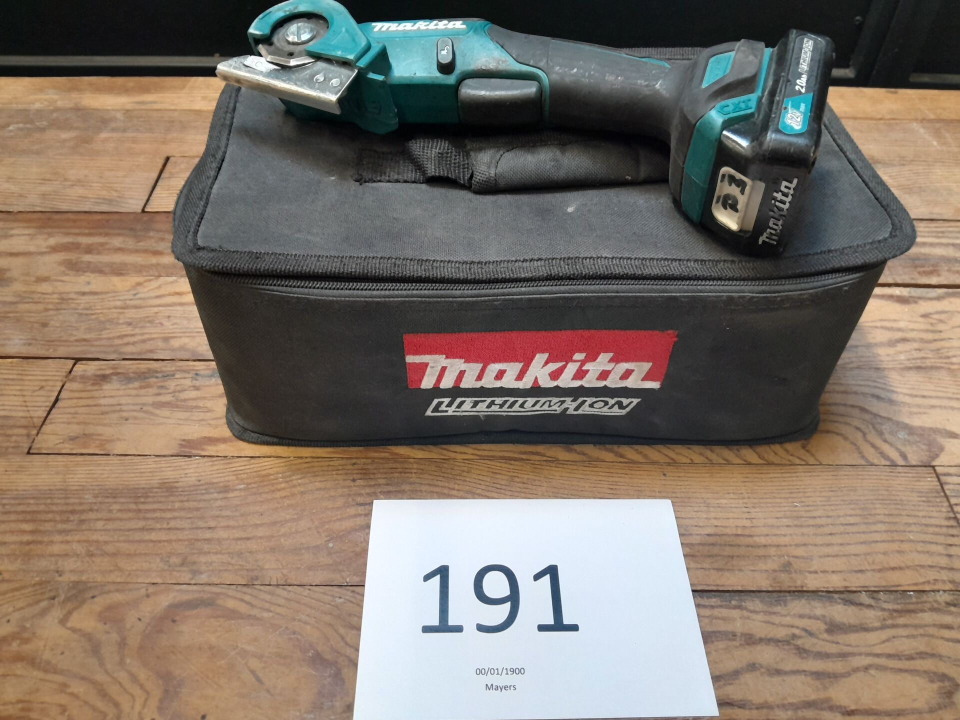 1 découpeur universel mod CP100D avec une batterie mod BL1021B 12 V 2 AH le tout de marque MAKITA dans une sacoche N/S 853G67C7