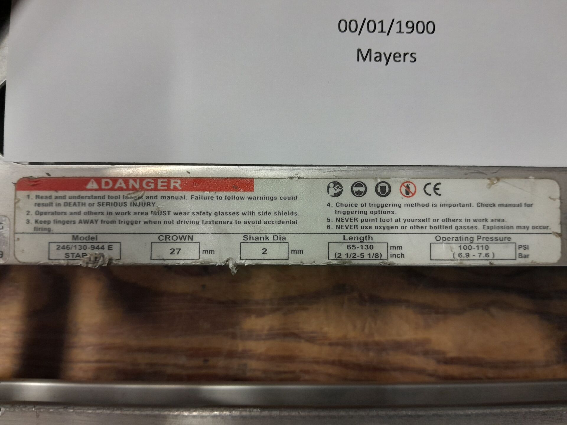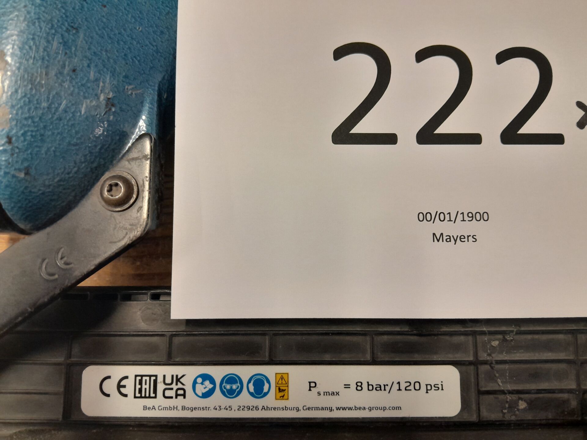 1 ensemble comprenant : 1 agrafeuse pneumatique modèle 180/65-835C ainsi qu'1 agrafeuse pneumatique pour agrafes à dos large modèle 246/130-944 dimensions 400 X 396 X 132 mm le tous de marque BEA , n/s 15185422 - 19980118