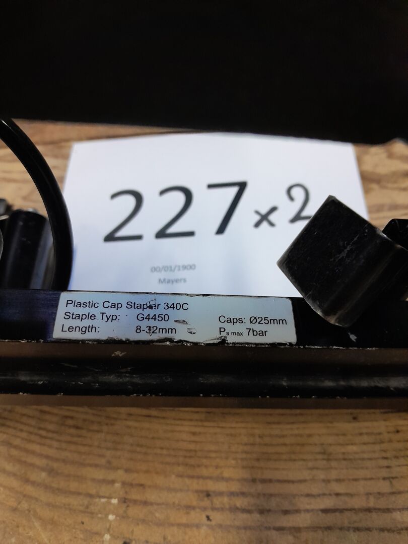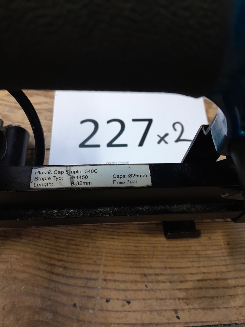 2 agrafeuses pneumatiques pour rondelles en plastique modèle 340 C de marque BEA Dimensions : 225 X 125 X 275 mm 21030004, n/s illisible, non renseigné