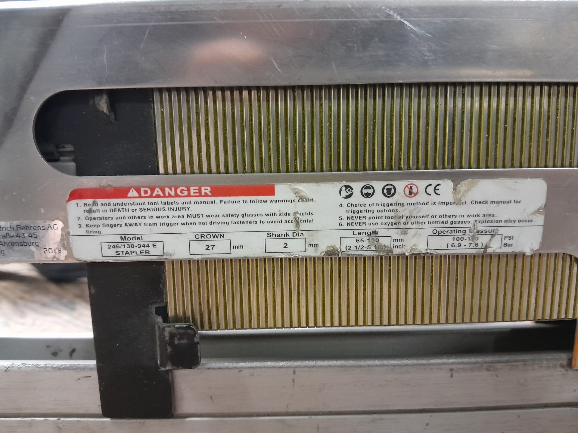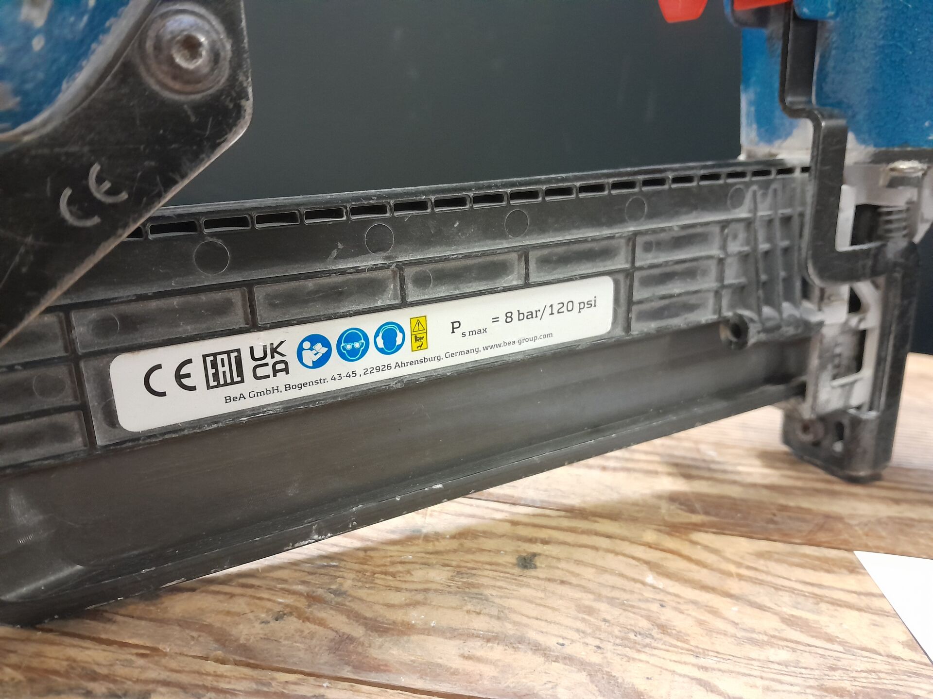 1 ensemble comprenant :1 agrafeuse pneumatique modèle 180/65-835C ainsi qu'1 agrafeuse pneumatique pour agrafes à dos large modèle 246/130-944 dimensions 400 X 396 X 132 mm, le tout de marque BEA, ns/ 18905865 - 14925722