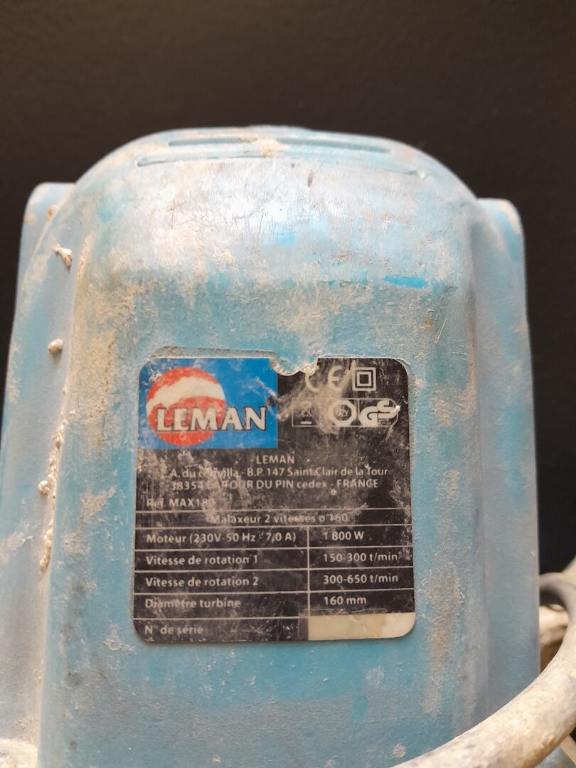 1 mélangeur filaire 2 vitesses 1800 W modèle inconnu de marque LEMAN n/s illisible /non renseigné