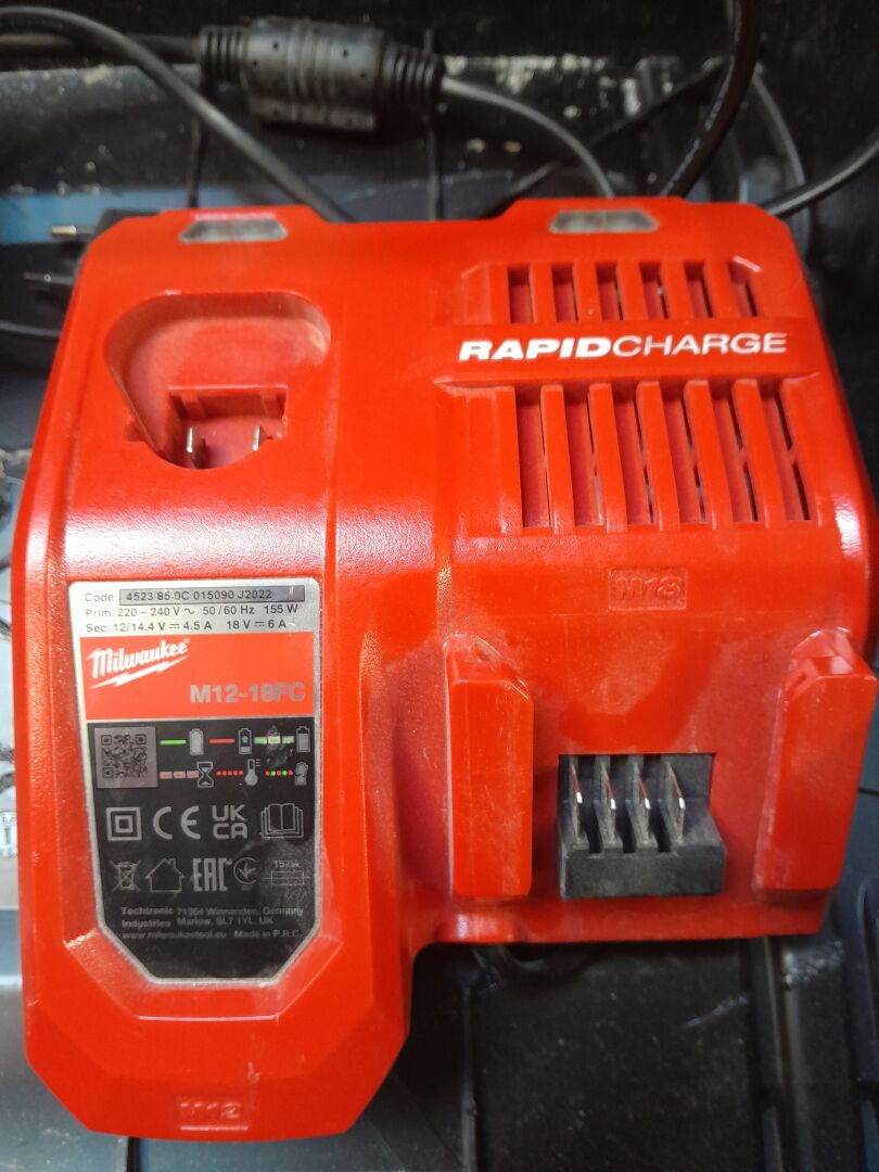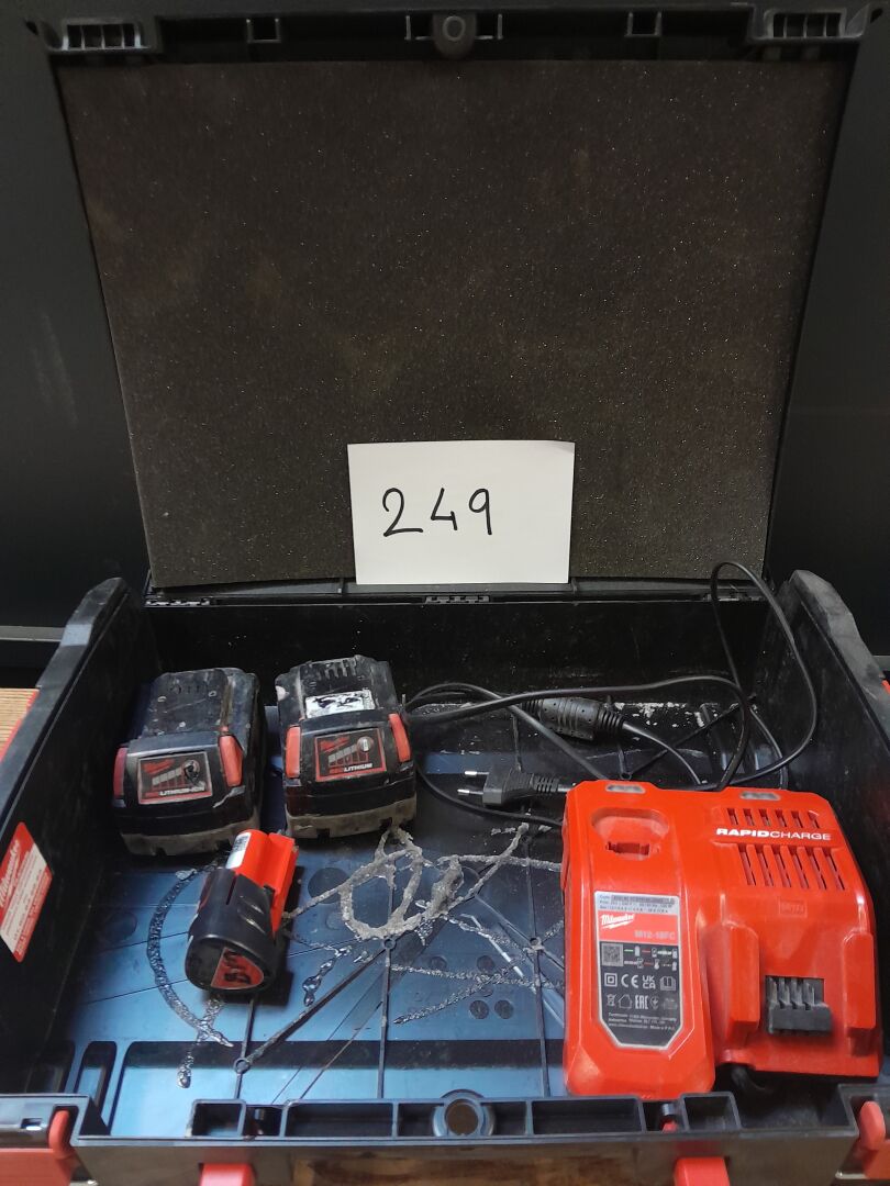 1 ensemble constitué d' 1 chargeur modèle M12-18FC , 2 batteries modèle M 18 B 5 ainsi qu'1 batterie modèle M 12 B 2 le tout de marque MILWAUKEE dans un coffret ( sans sa structure intérieur ), n/s 17024278