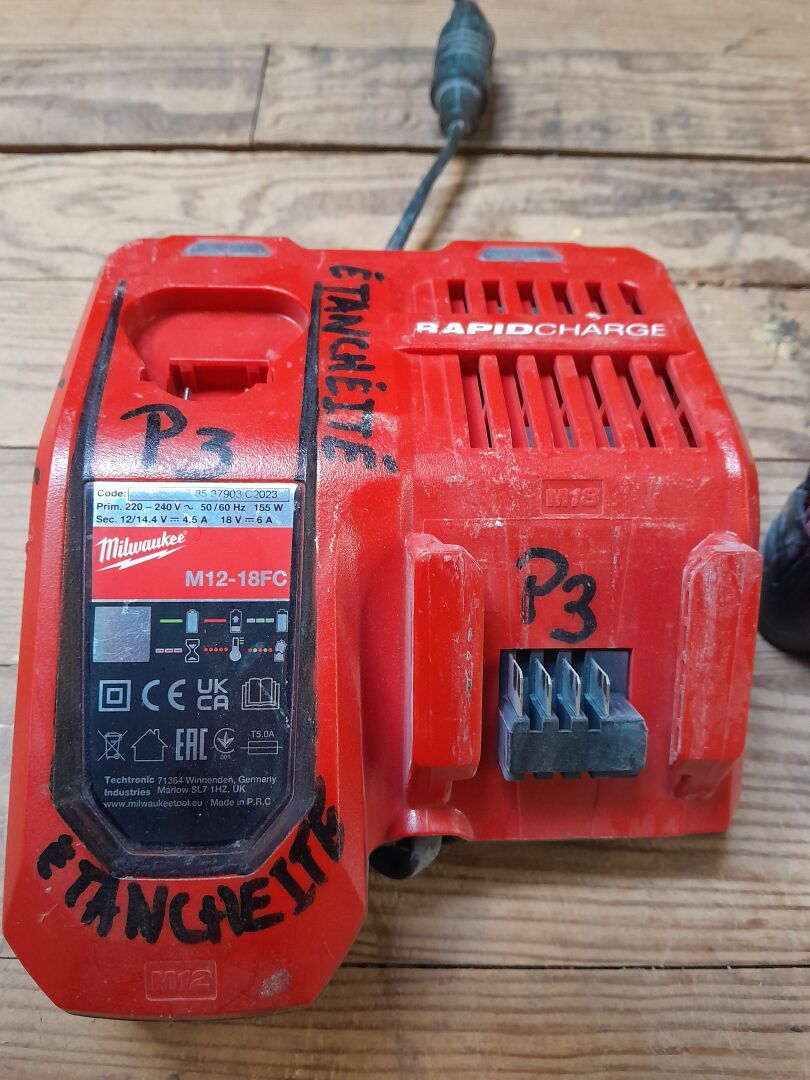 1 ensemble constitué d'1 chargeur modèle M12-18 FC , 1 batterie modèle M18-2B , 1 batterie modèle M18-5B , 1 batterie modèle M12-4 B ainsi que M12- 2B le tout de marque MILWAUKEE