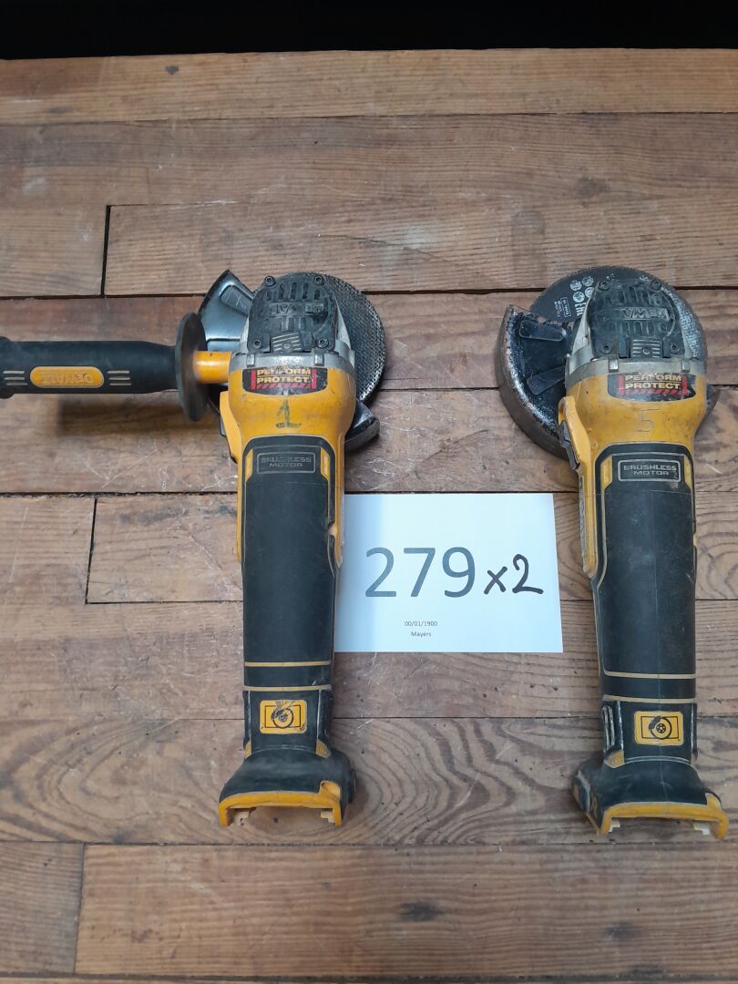 2 meuleuses d'angle autonomes modèle DCG405 de marque DEWALT sans chargeur ni batterie n/s illisible ou non renseigné