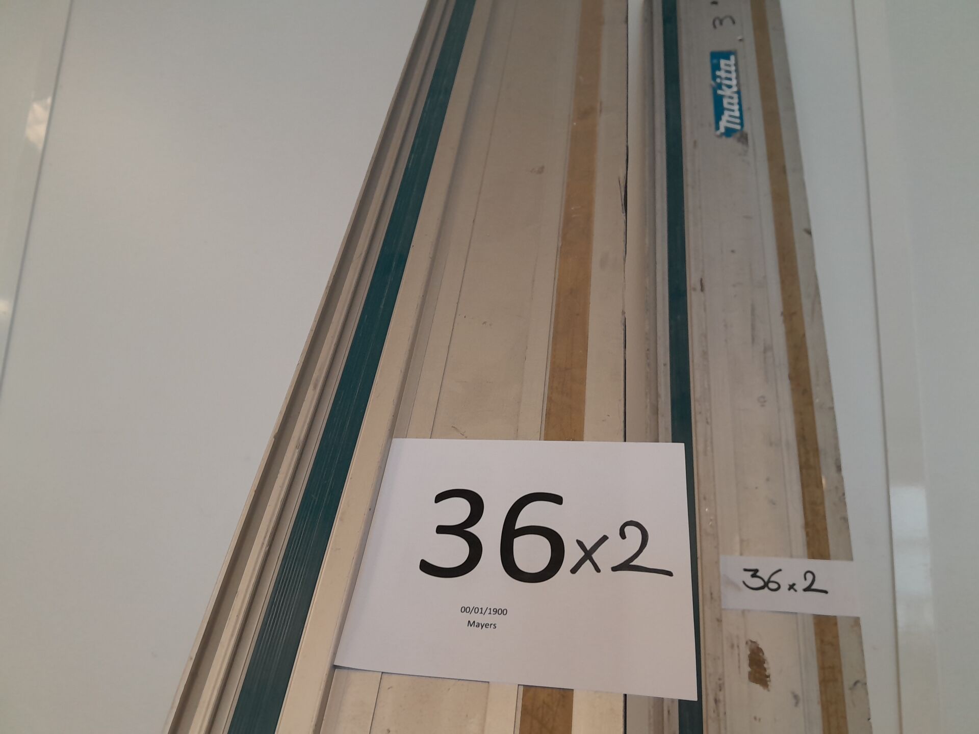 1 lot de 2 rails de guidage pour scie plongeante / fraiseuse de marque MAKITA l'un de 3000 mm l'autre de 2250 mm ; traces d'utilisations et manques