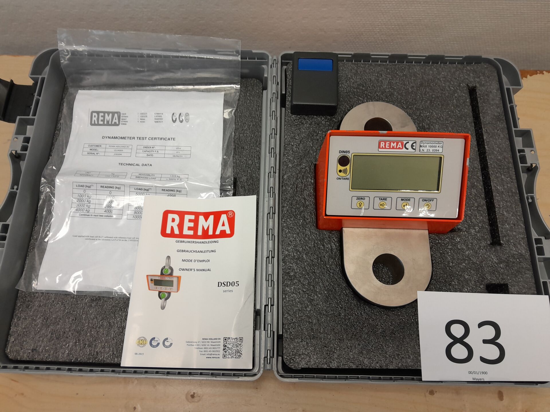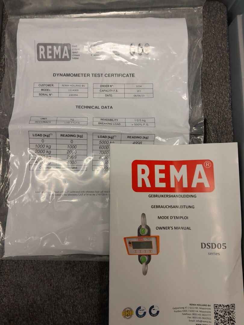 1 dynanomètre affichage digital capacité de 10 tonnes modèle DSD05 de marque REMA en coffret avec son certificat de test