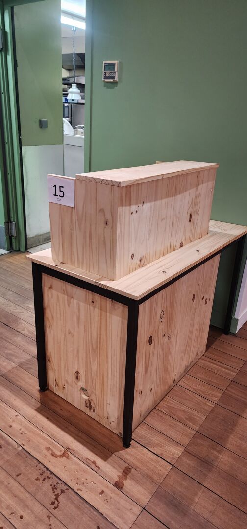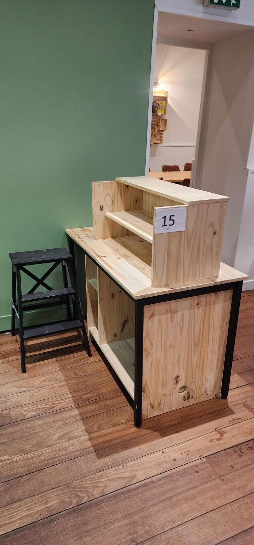 1 escabeau bois pin noir 1 meuble comptoir fabrication maison en pin et métal noir, 121x112x61 cm