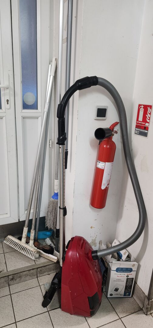 1 plonge 2 bacs avec douchettes égouttoir gauche, 189x60 cm + 2 poubelles PVC blanc (à démonter proprement, en respectant l'étanchéité, prévoir pose de bouchons de plombier) 1 aspirateur traineau ROWENTA Power 1 lot de balais