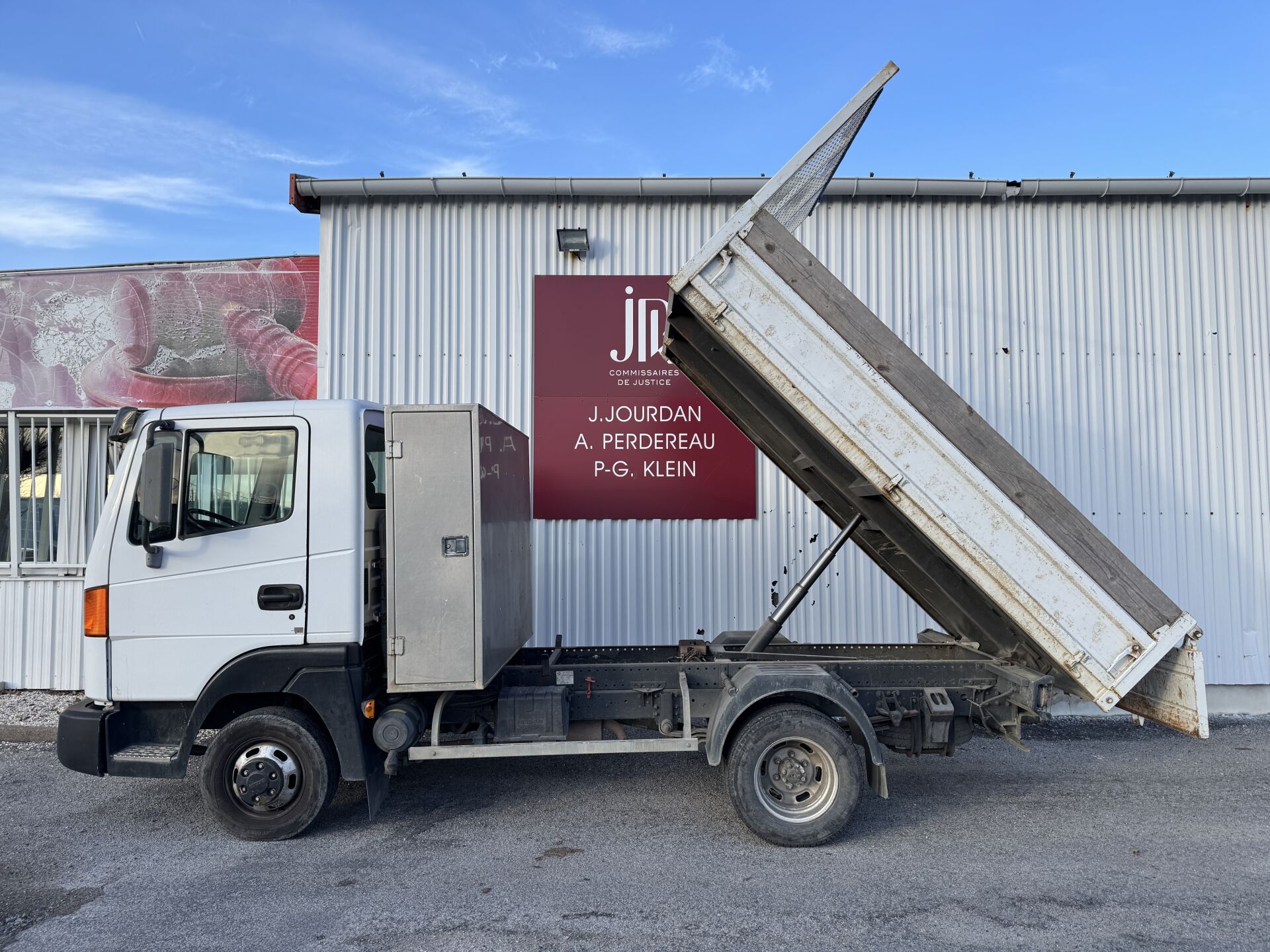 BVM5- RADIO- VITRES ELECT. BENNE JPM MODELE HERCULE TYPE 3.5 T DE 2006-RIDELLES METAL AVEC REHAUSSE BOIS, PRESENCE DE ROUILLE, COFFRE INOX- ROUES AR JUMELEES SIEGE CONDUCTEUR DECHIRE- PLASTIQUES RAYES ET TACHES. RAYURES D'USAGE. DEFAILLANCES MAJEURES: DEFAUT D'ORIENTATION DU FEU AVG- MAUVAISE ATTACHE DES RESSORTS OU STABILISATEURS AU CHASSIS OU A L'ESSIEU AVG, ARD, AR, AVD ET ARG- AMORTISSEUR ARD ET ARG MAL FIXES- AVERTISSEUR SONORE TOTALEMENT INOPERANT. DEFAILLANCES MINEURES: DISQUE OU TAMBOUR DE FREIN AVD ET AVG LEGEREMENT USES- ECLAIRAGE DE LA PLAQUE D'IMMAT AR DEFECTUEUX- 4 PNEUS SOUS GONFLES- CORROSION DU CHASSIS AV, C ET AR. FRAIS JUDICIAIRES 11.9 % HT