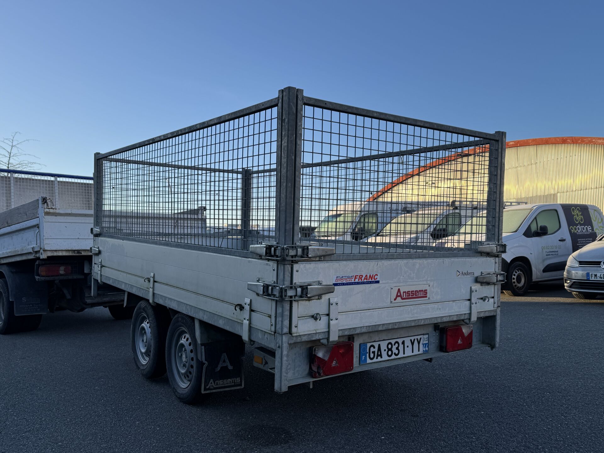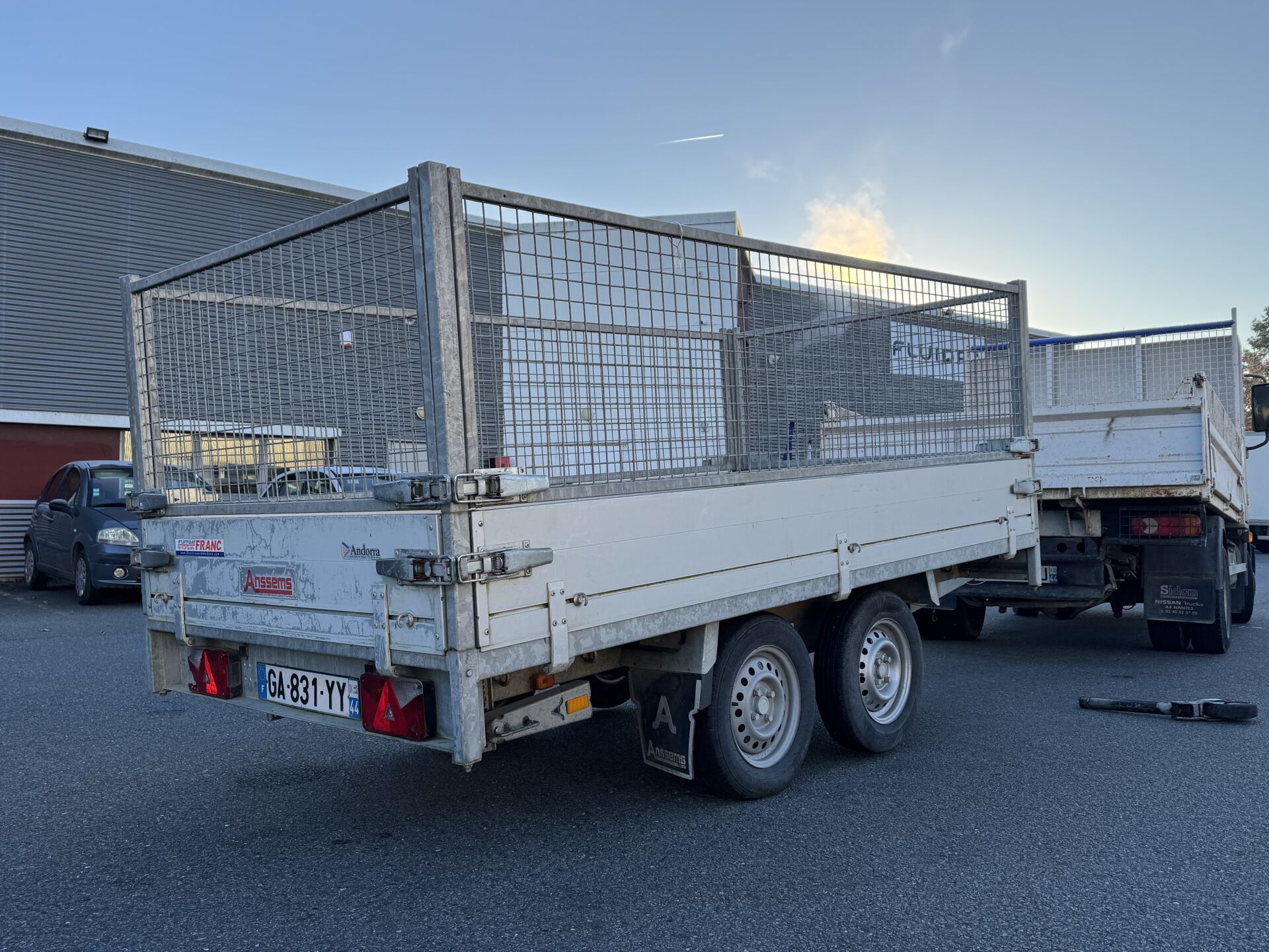 RIDELLES ALU AVEC REHAUSSE GRILLAGEE HAUTEUR 1100 GALVA- PLATEAU 3100 X 1600. LONGUEUR DU TIMON: 1500. 2X2 ROUES. FRAIS JUDICIAIRES 11.9 % HT