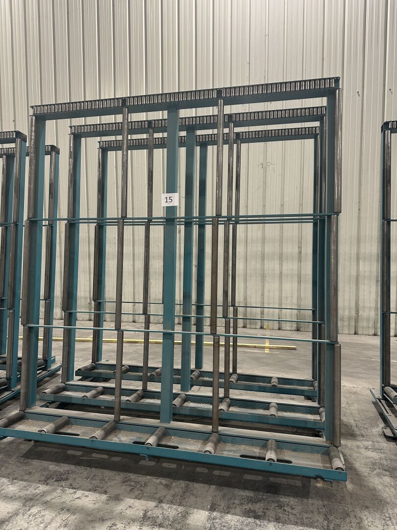 1 rack de stockage à panneaux inclinaison 83 ° à rouleaux , 3 compartiments, , longueur 260 cm hauteur 300 cm