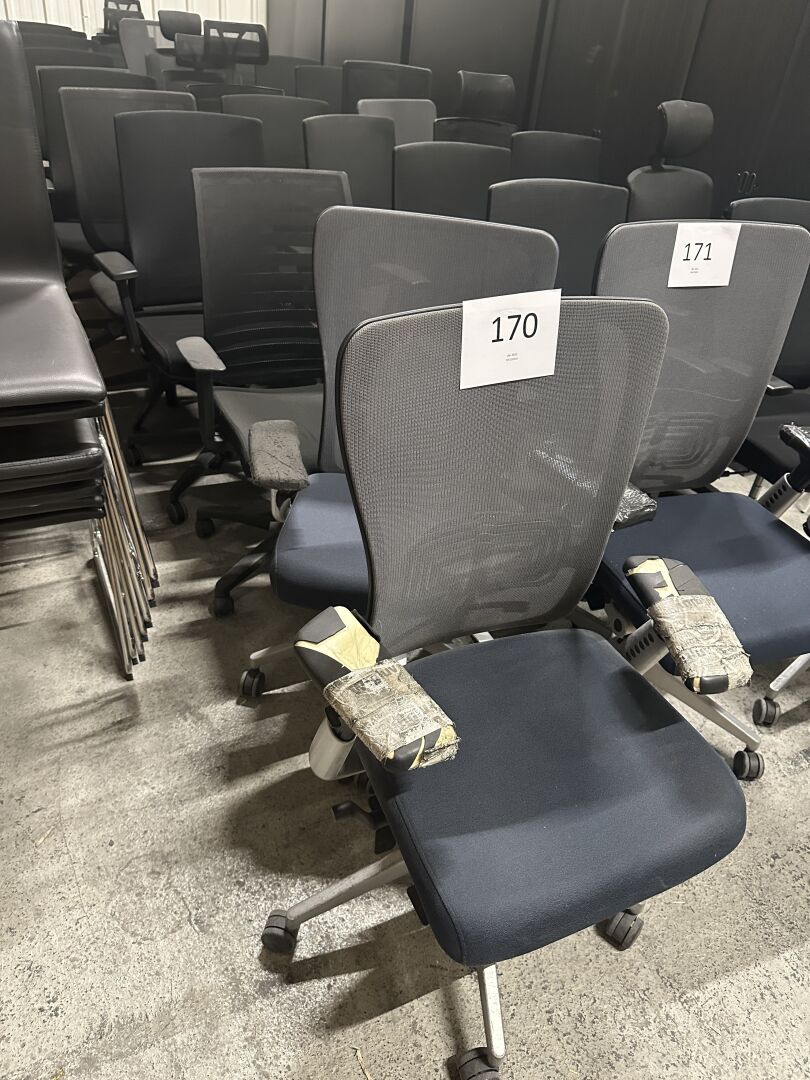 13 fauteuils ou chaises tournantes et roulantes assise tissu noir ou gris, dos filet