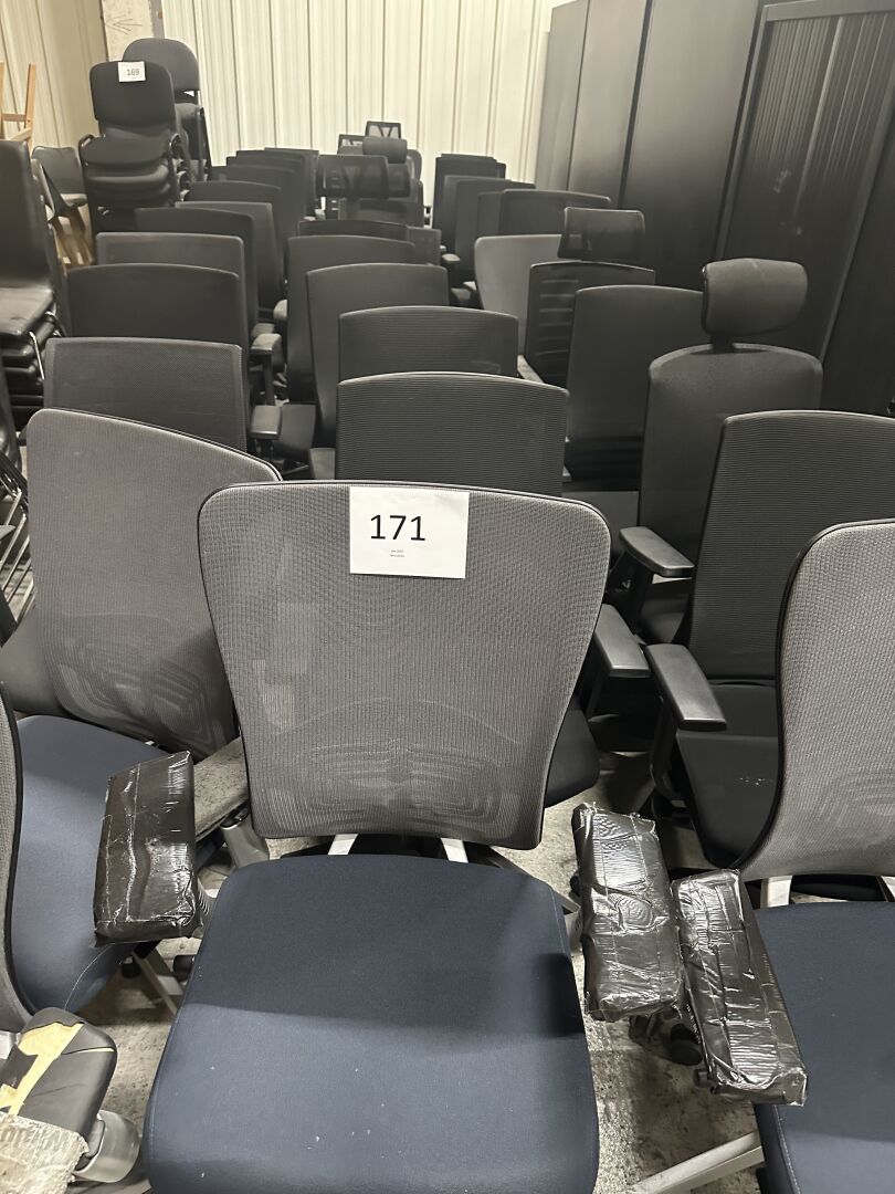 13 fauteuils ou chaises tournantes et roulantes assise tissu noir ou gris, dos filet