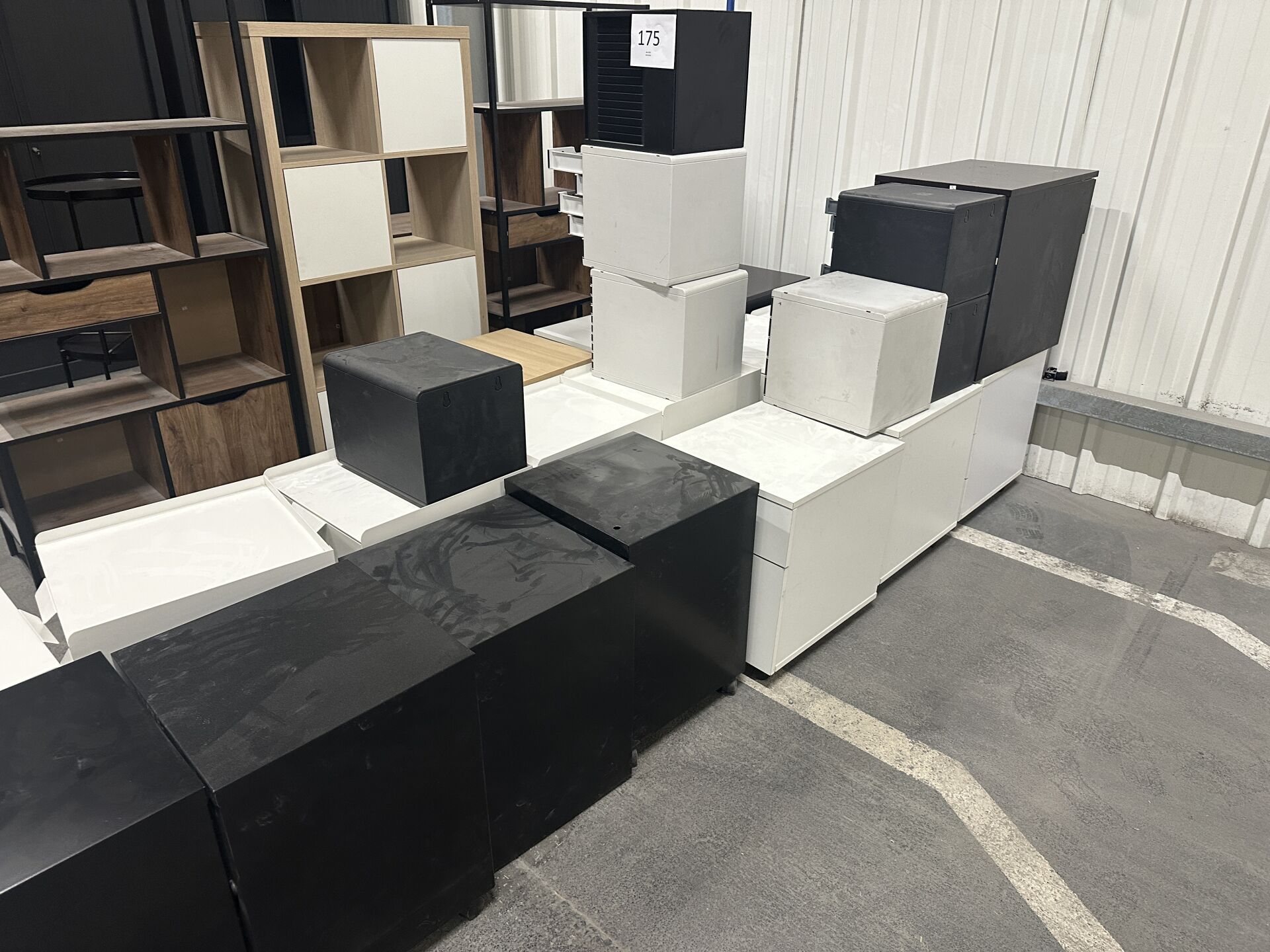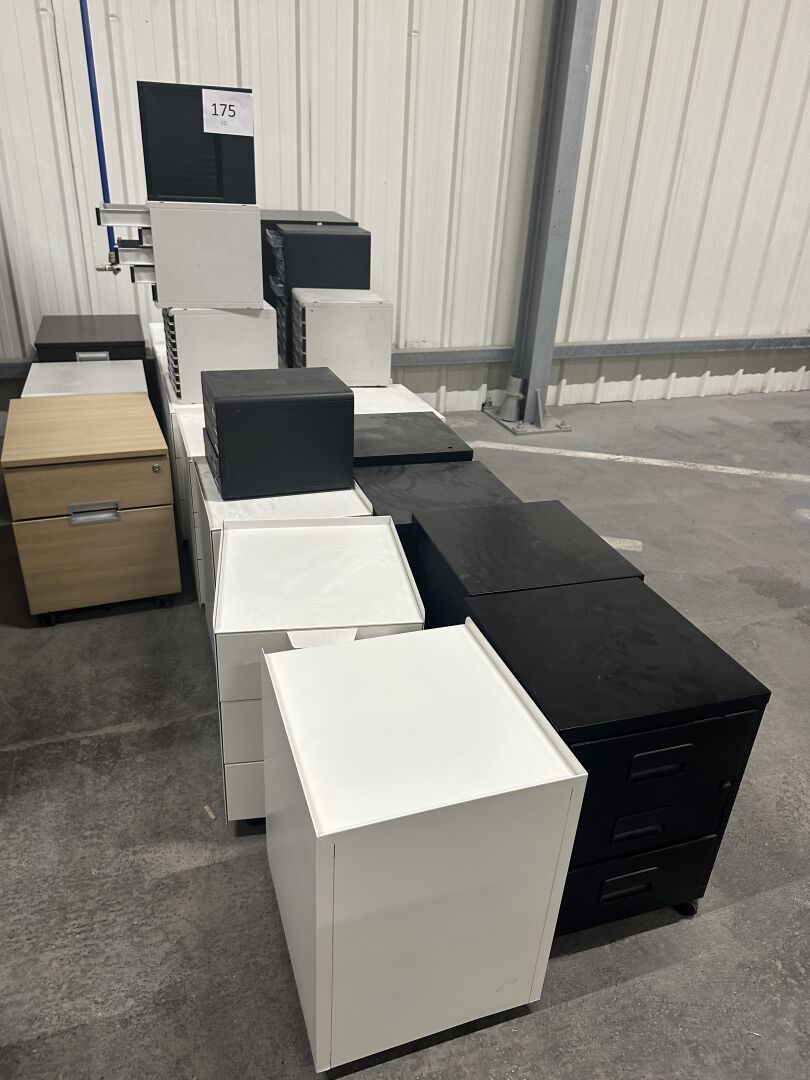 18 caissons mobiles mélaminé ou métal, blancs, noirs ou bois, 5 trieurs PVC à tiroirs