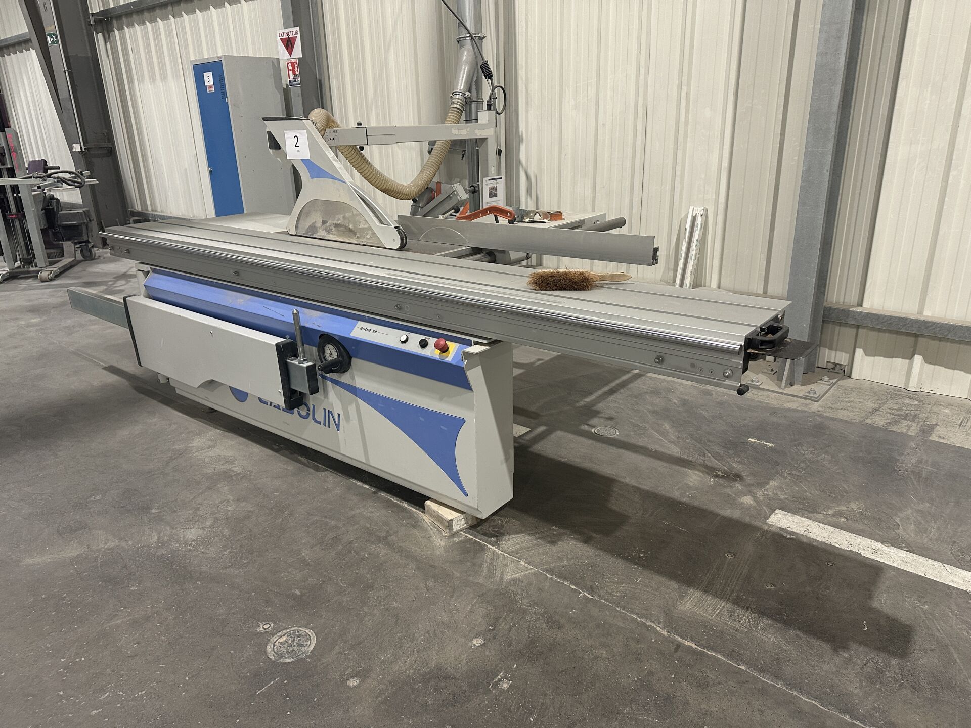 1 scie à format CASOLIN, modèle ASTRA SE 400 , table de travail 320 x180 cm, table d'équerrage hors service, de 2021 NS : 1142021, diam lame maxi 400 mm