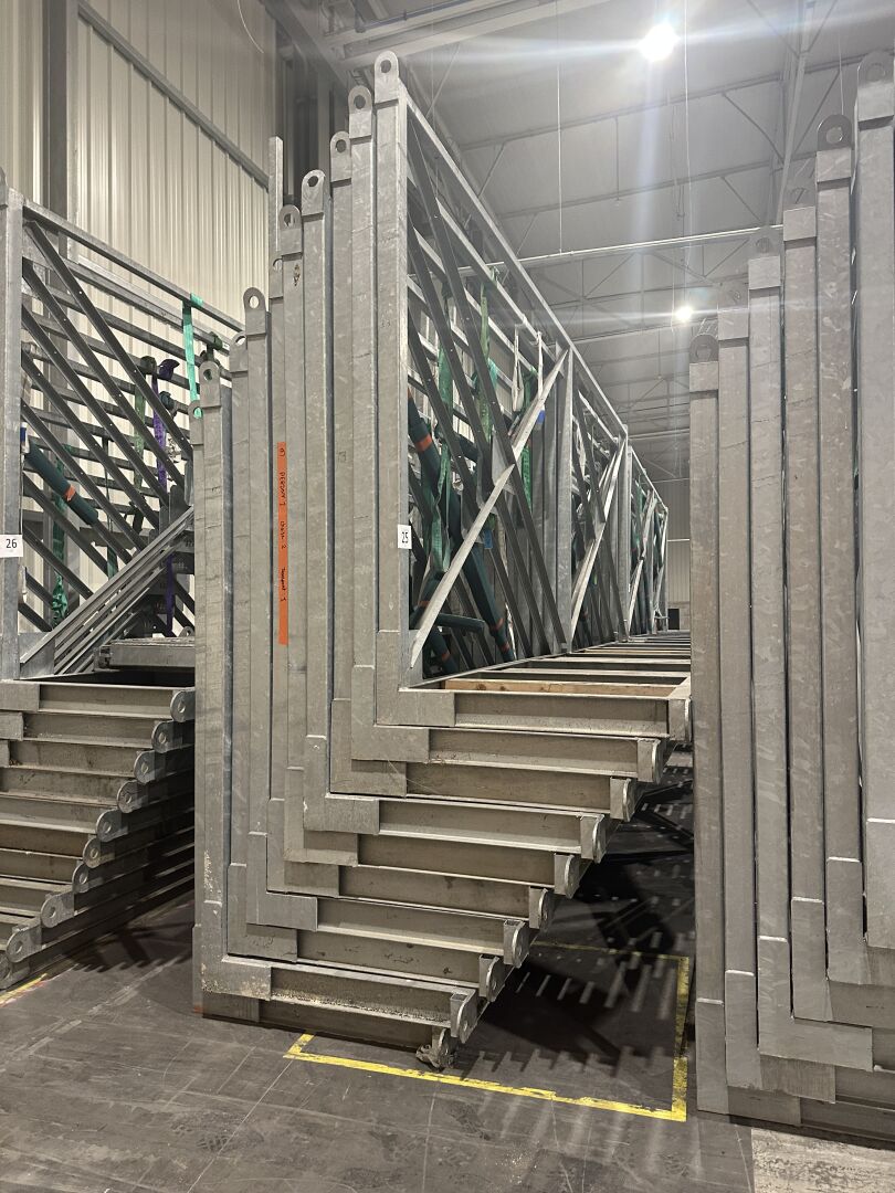 10 chaises de transporteur acier galva, 1225 x 7000 x 2650 mm (prises fourches ou élingues)