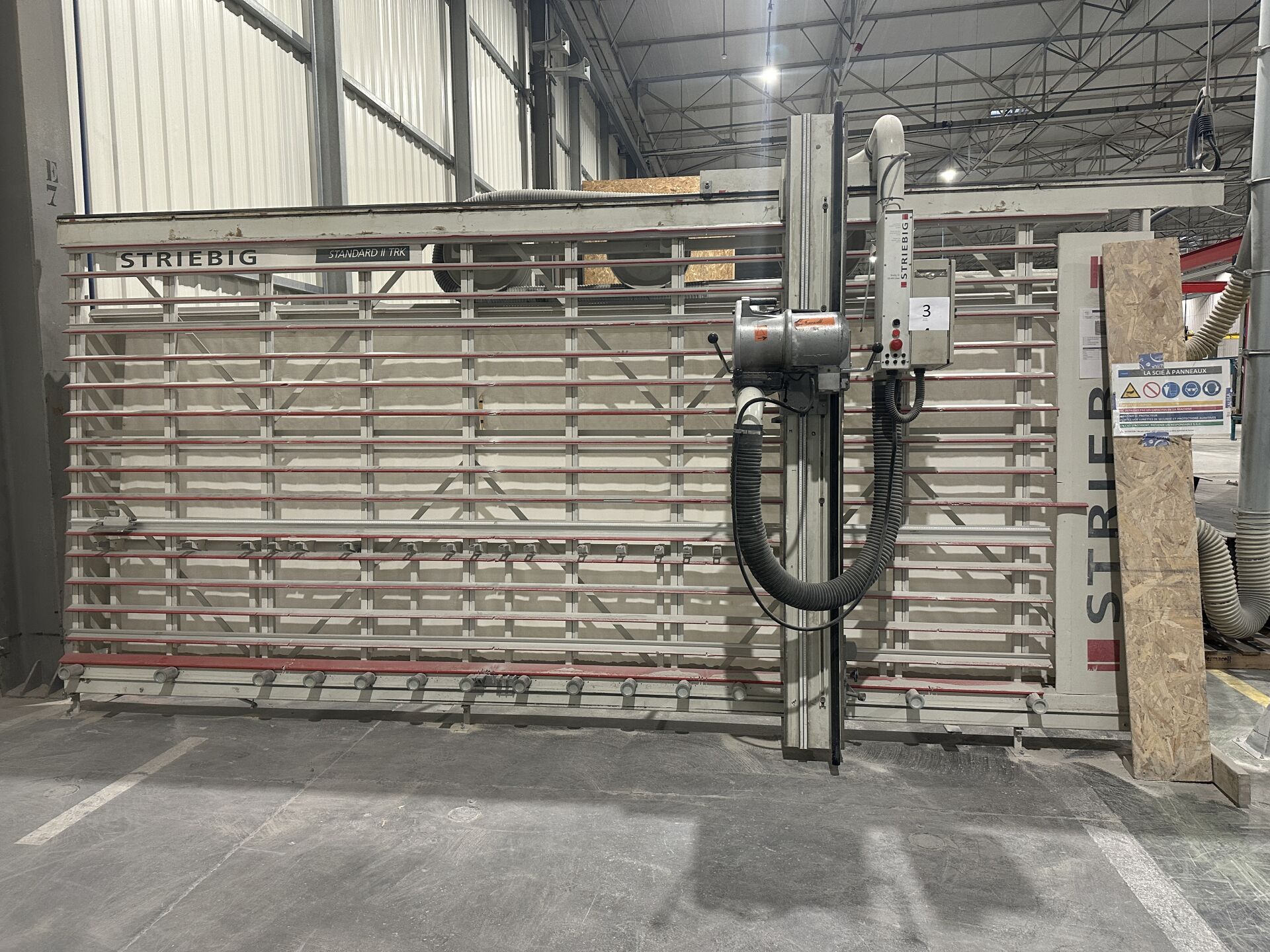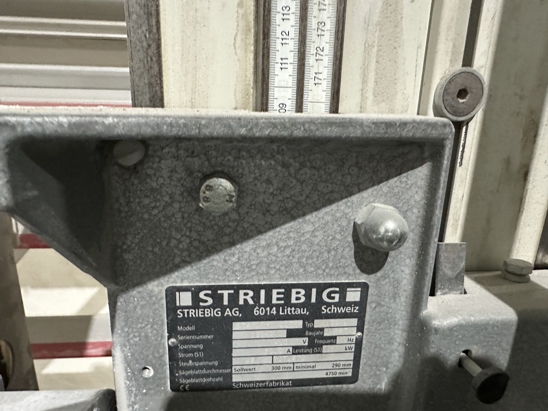 1 scie à panneaux STRIEBIG, modèle STANDARD II TRK, type 5220 A de 1999 4750 X 2100 mm NS : 28942, lame diam 300 mm, équipée d'une lame à Fermacell