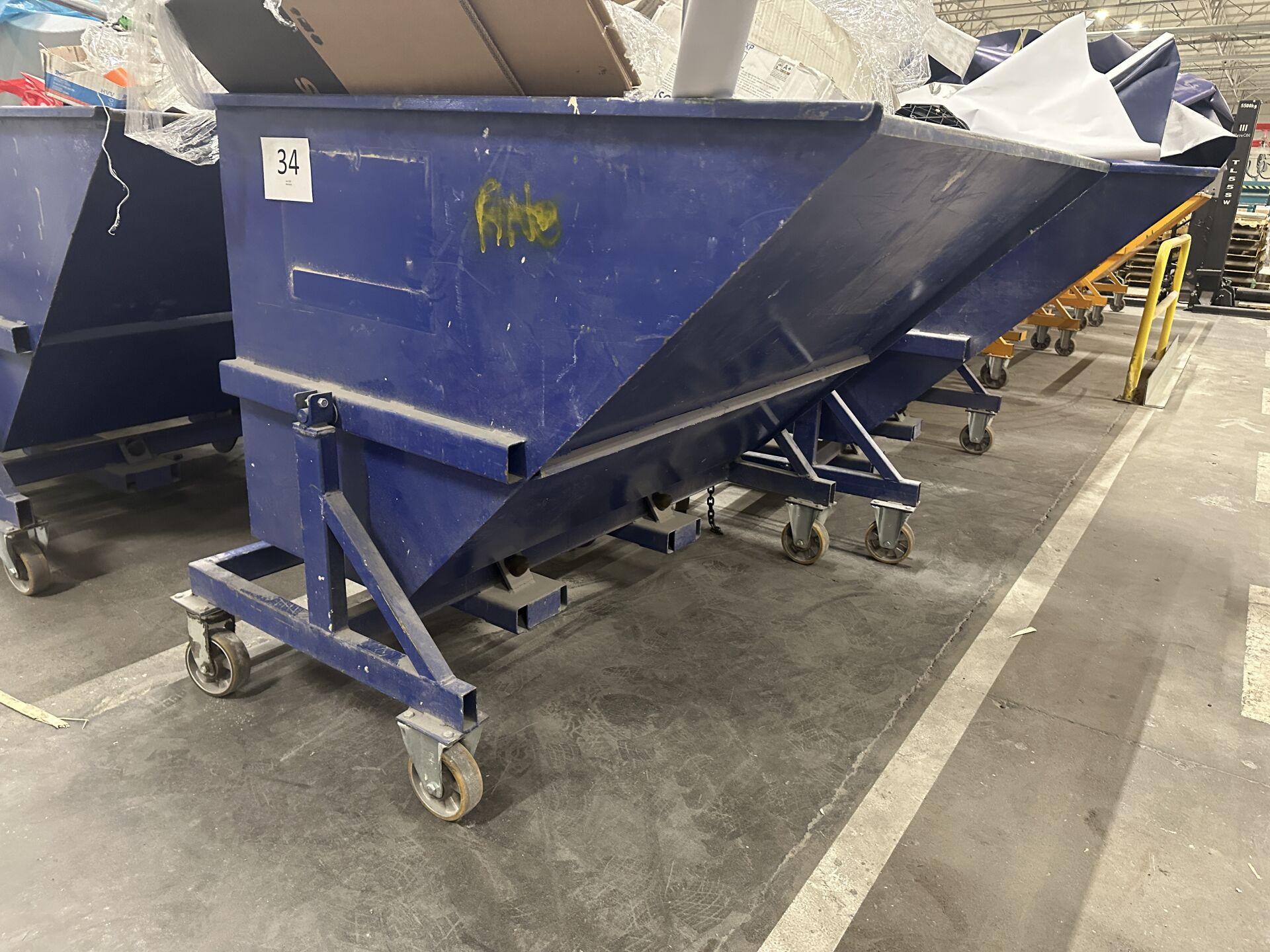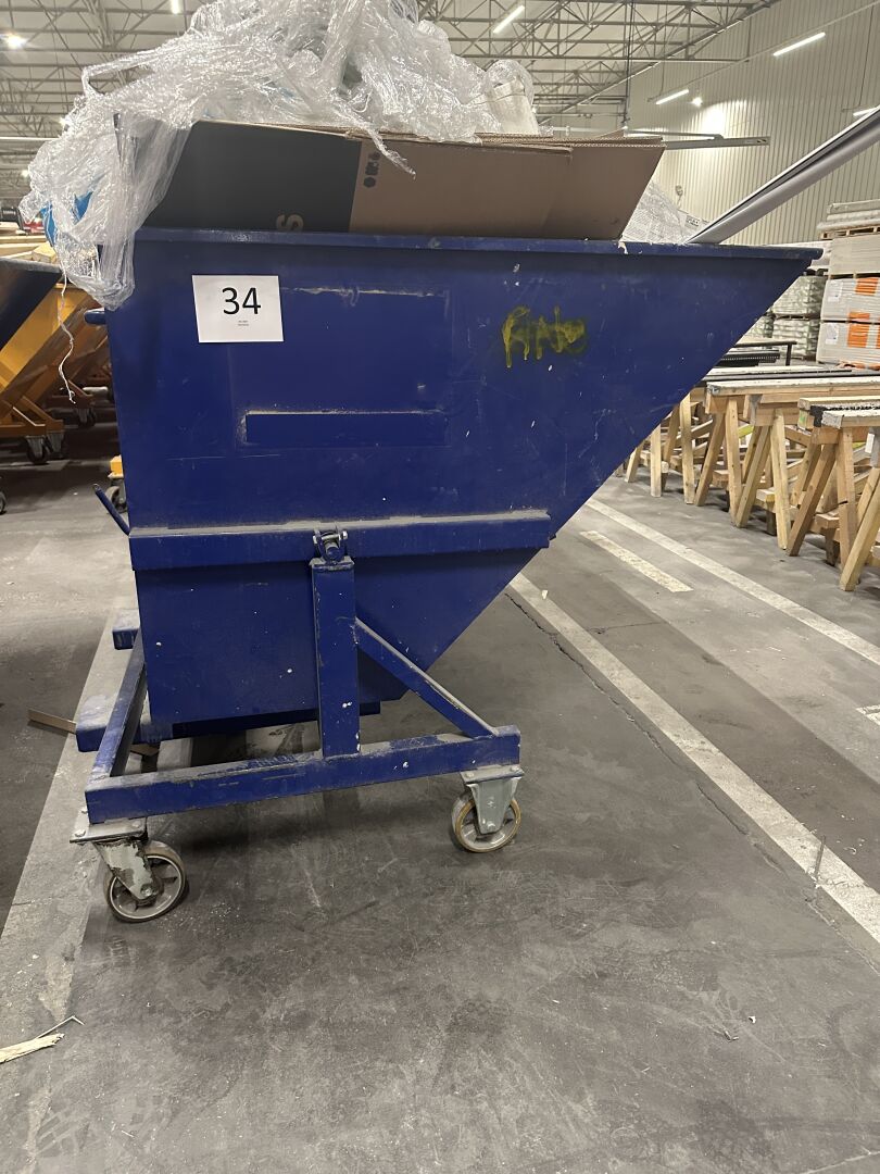 1 benne auto basculante 1320 l en métal laqué bleu type BAD P1320 R, PAV 241 kg, CU 1 T