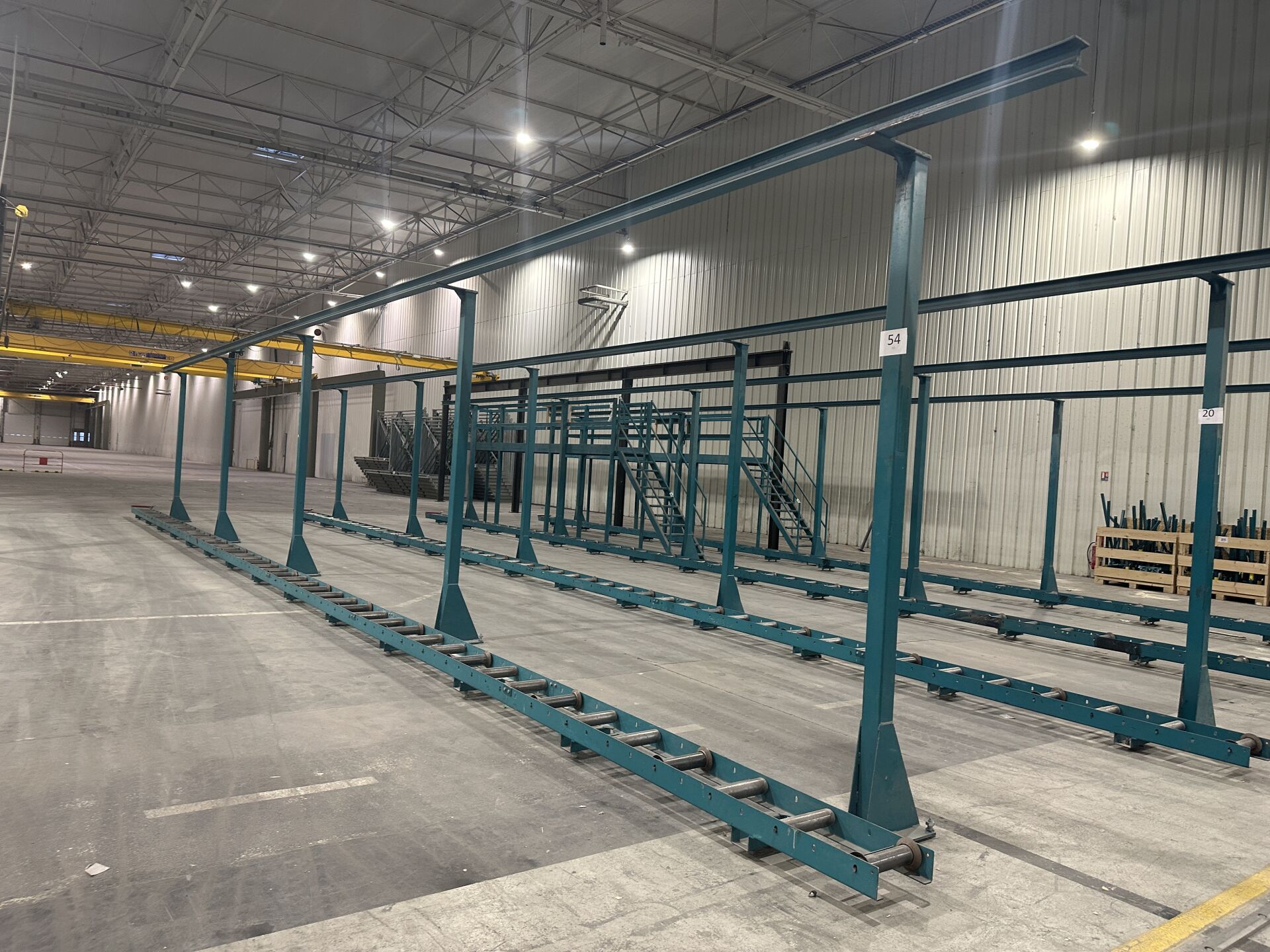 1 ligne de transfert vertical de 20 m comprenant : 5 montants, hauteur 310 cm 7 convoyeurs à rouleaux 280 cm, largeur 33 cm