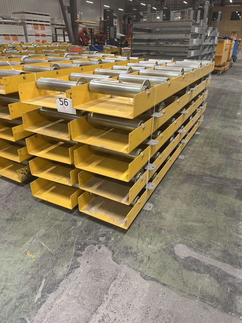 10 convoyeurs à rouleaux métal laqué jaune longueur 280 cm largeur 42 cm