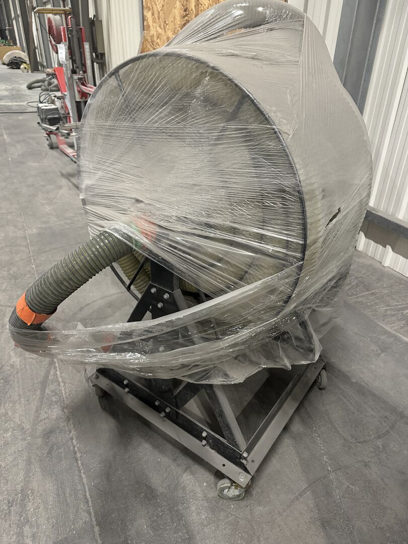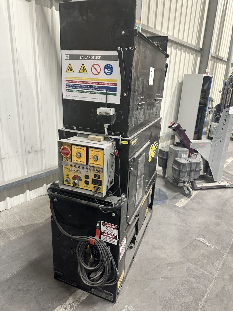 1 cardeuse - souffleuse COOL MACHINES, modèle CM 2400 à capot haut avec dévidoir sur roulettes et 30 m linéaires de tuyau, gaine de 80 mm, sans plaque apparente, supposée de 2021