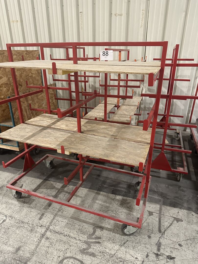 4 chariots métal rouge porte-profils , double face, 5 niveaux