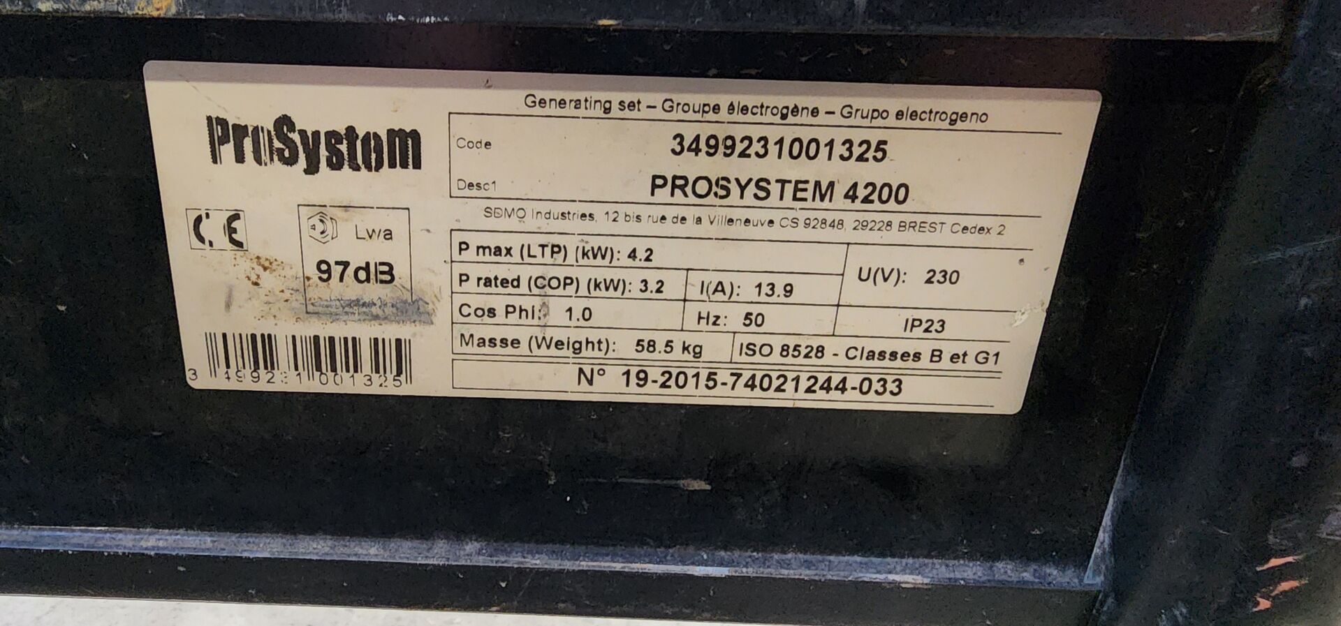 1 groupe électrogène PROSYSTEME 4200, sur cadre moteur KOHLER