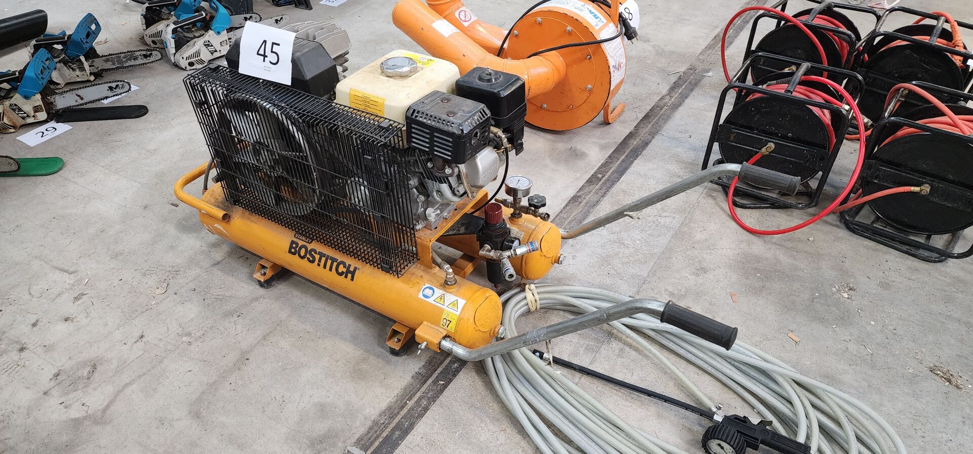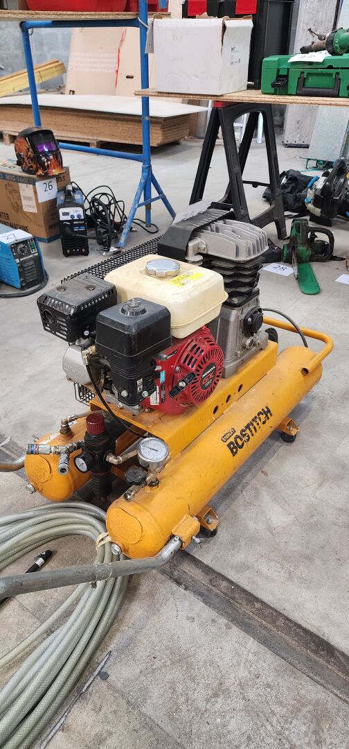 1 compresseur thermique BOSTITCH STANLEY type CFC34WHP5, sur chariot mobile moteur HONDA GX 160 de 2019 , 2 cuves de17 L