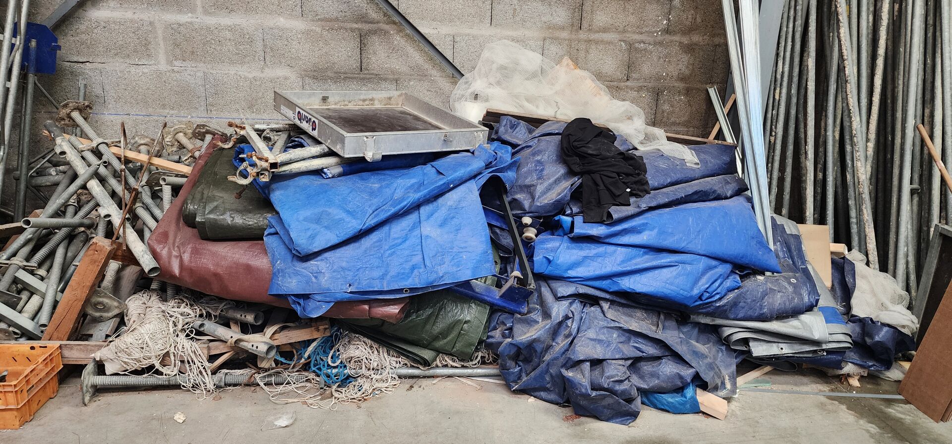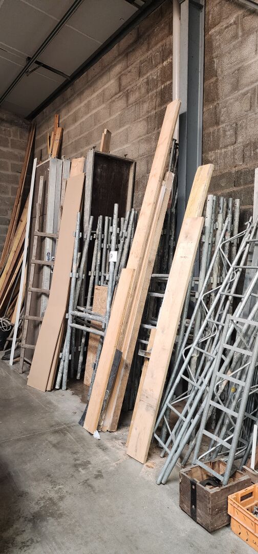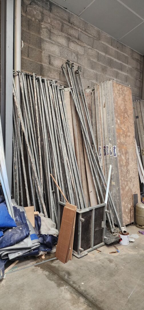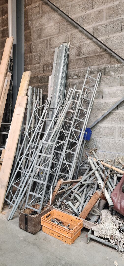 1 échafaudage en galva composé d'1 réunion de 2 échafaudages DUARIB (cap. : 180m2, 30 plateaux 300 x 75 cm, 20 échelles 200 x 90 cm), 1 lot de baches, filet de sécurité