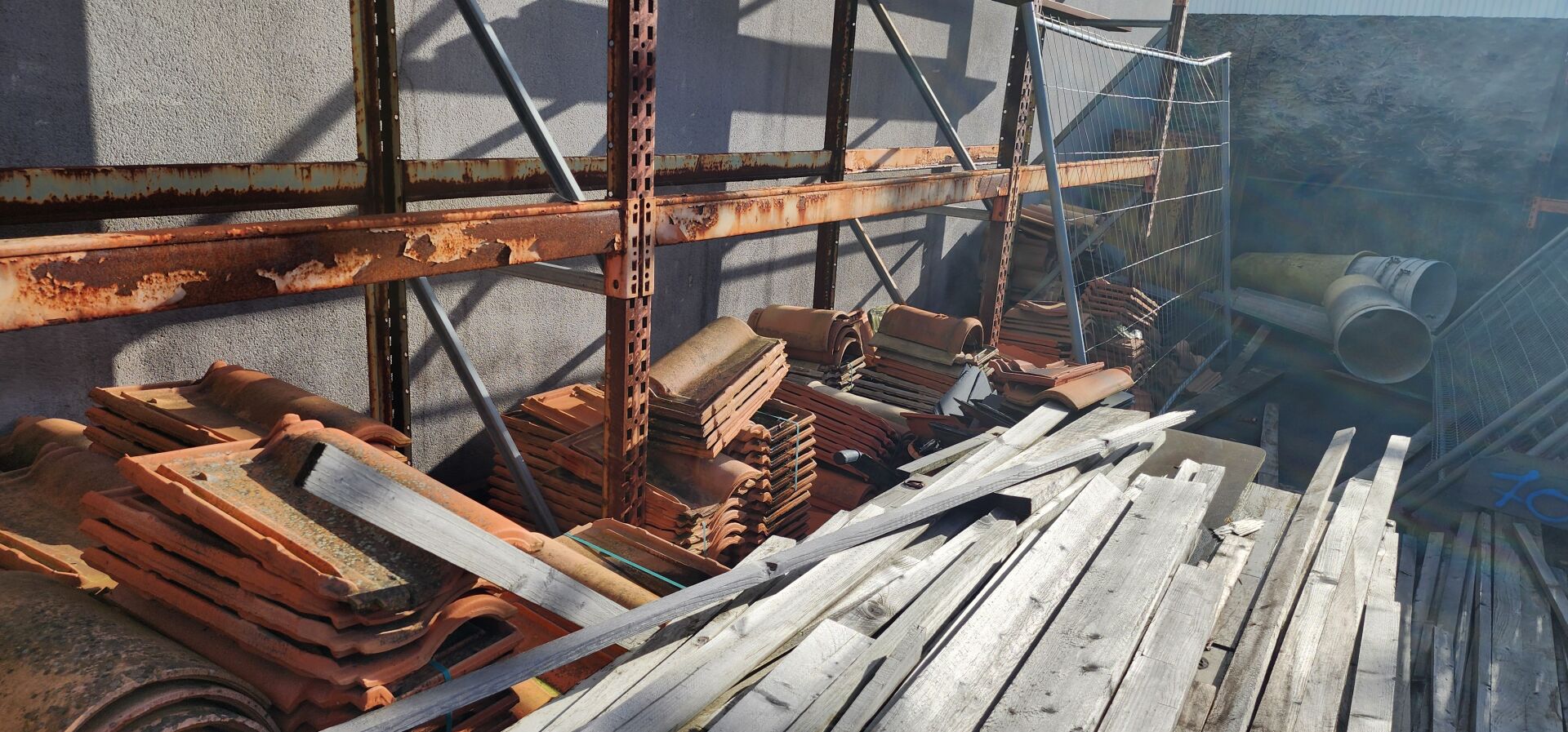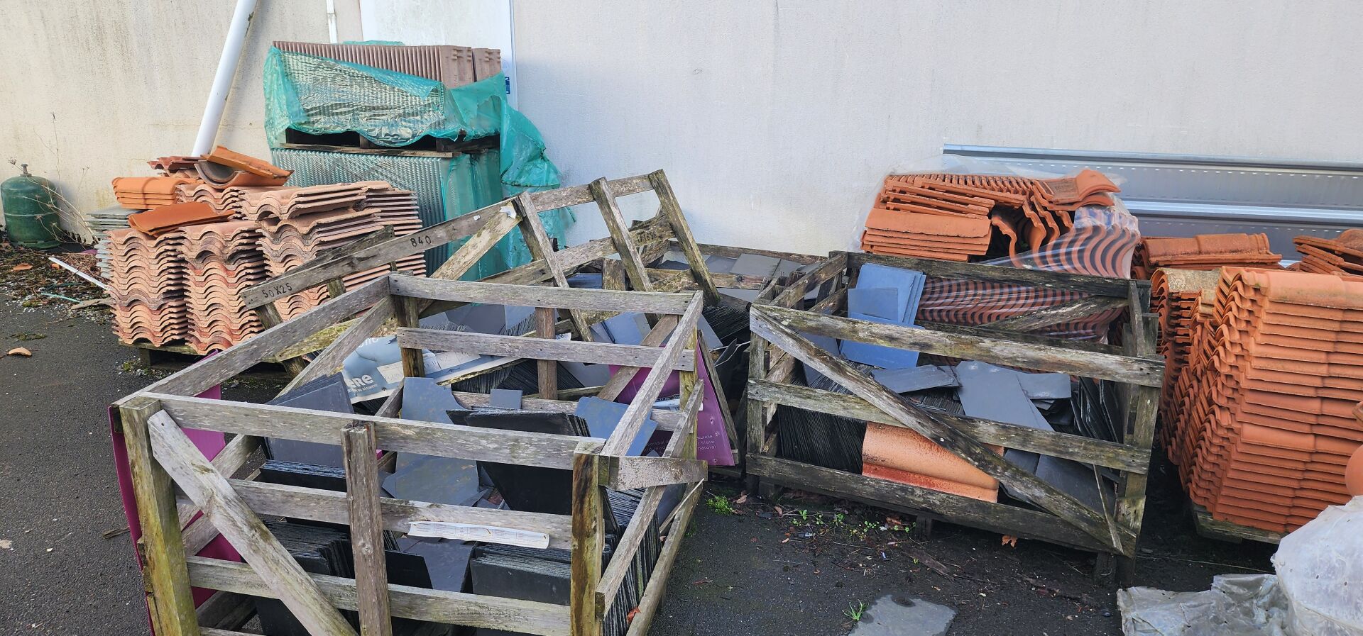 à l'extérieur : 1 stock de tuiles diverses équivalant à environ 10 palettes