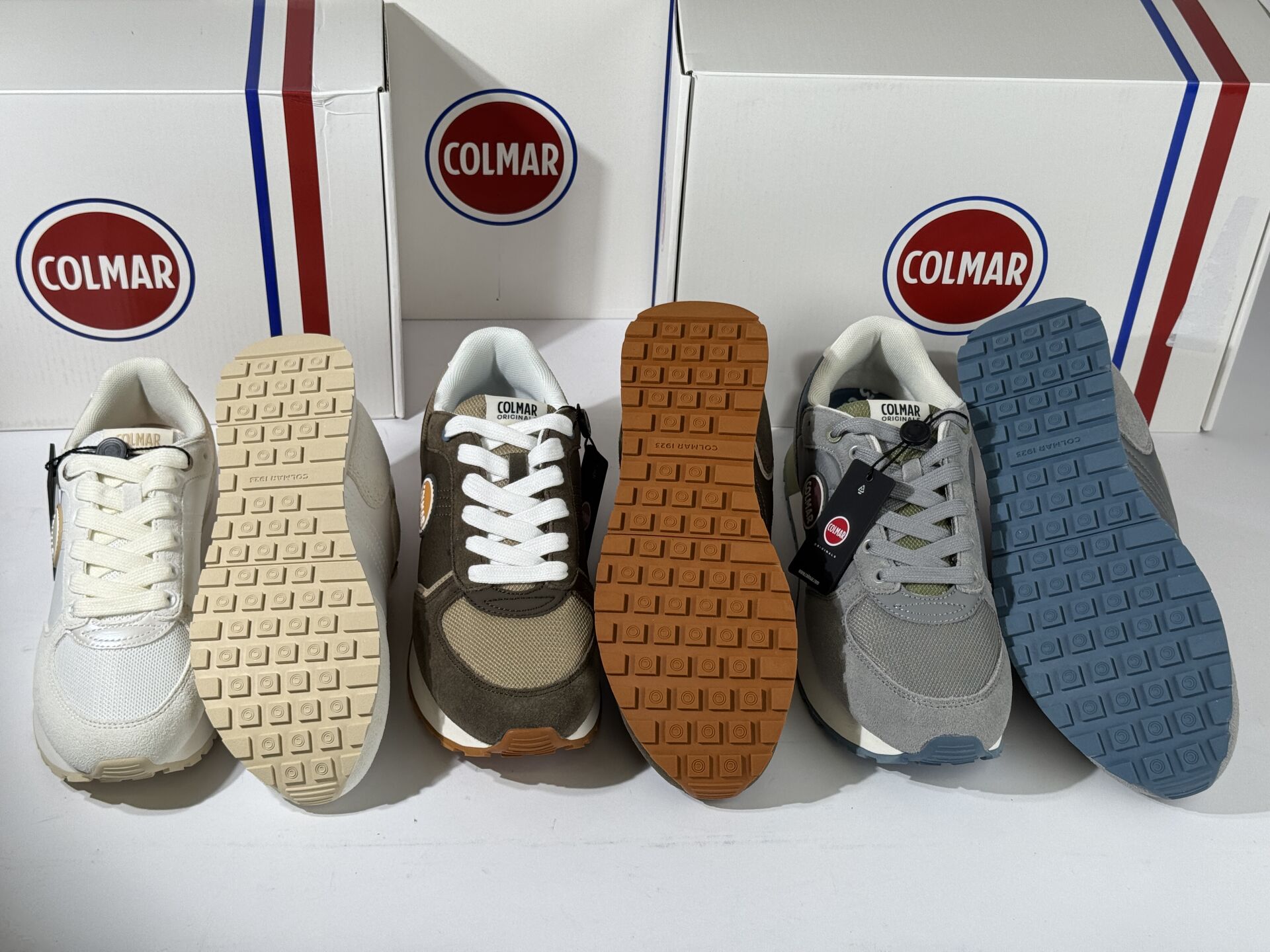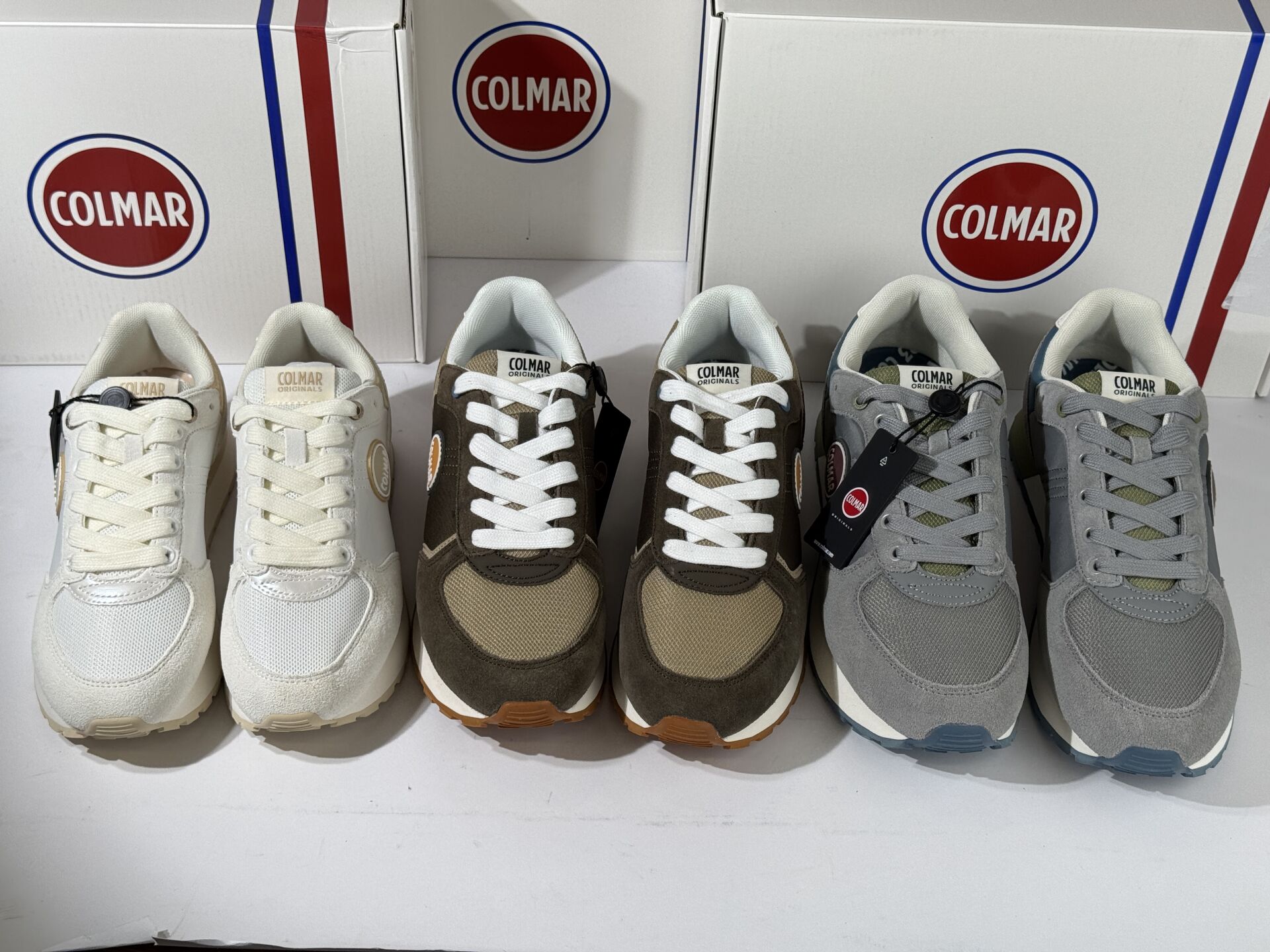 COLMAR - Lot de trois paires de baskets, lacets. Boites. Pointures 36, 41 et 43 Etat magasin