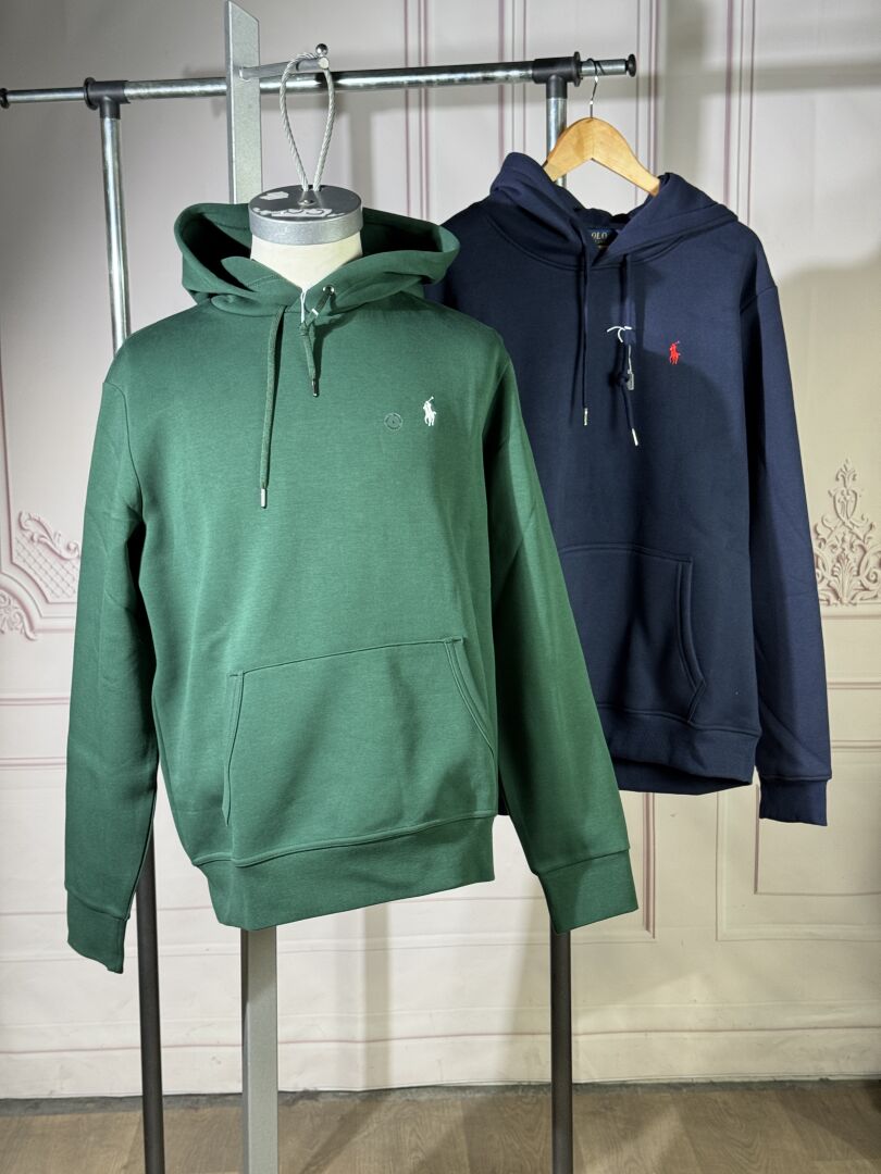 POLO RAPLH LAUREN - Lot de deux sweat à capuche coton mélangé marine et vert, poche kangourou, manches longues. Taille L Très bon état