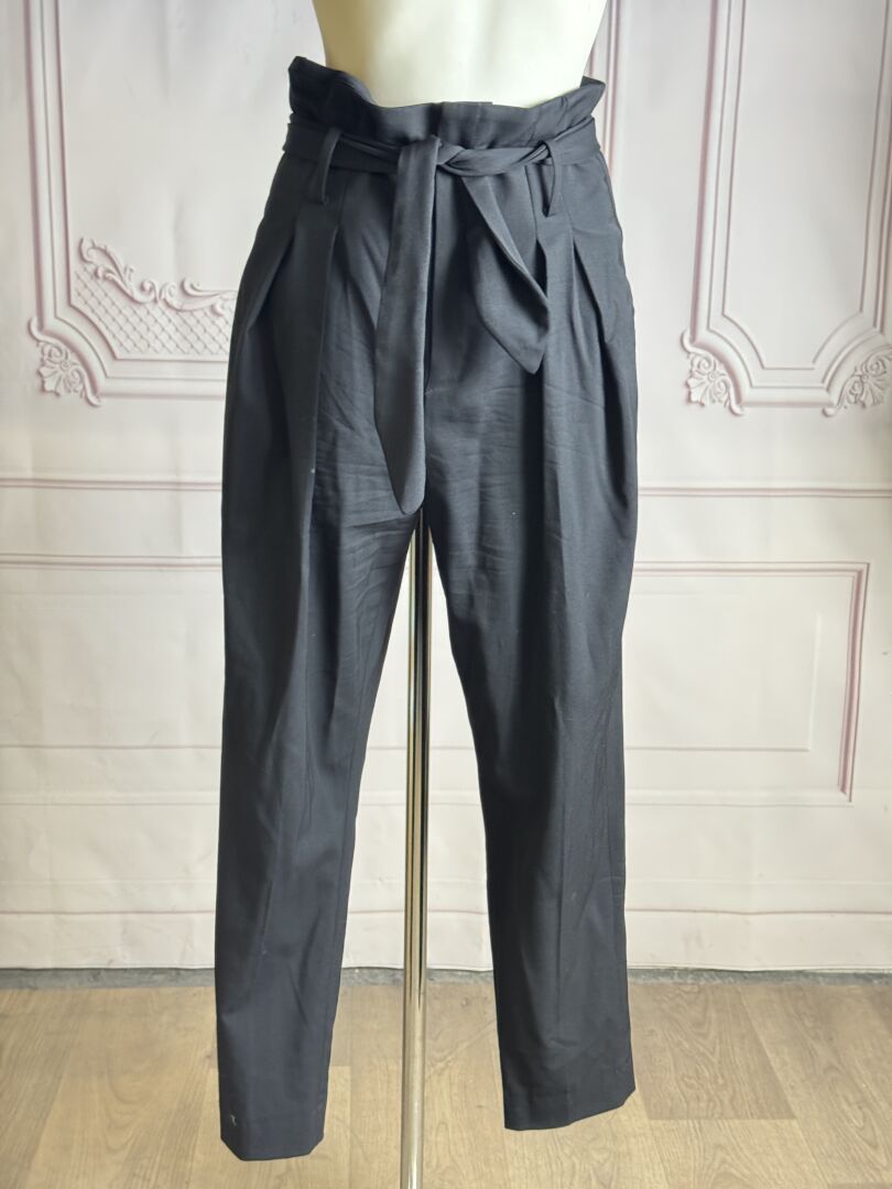 IRO - Pantalon de forme fuseau en laine et coton mélangé noir, ceinture. Taille 36 Déjà porté, bon état