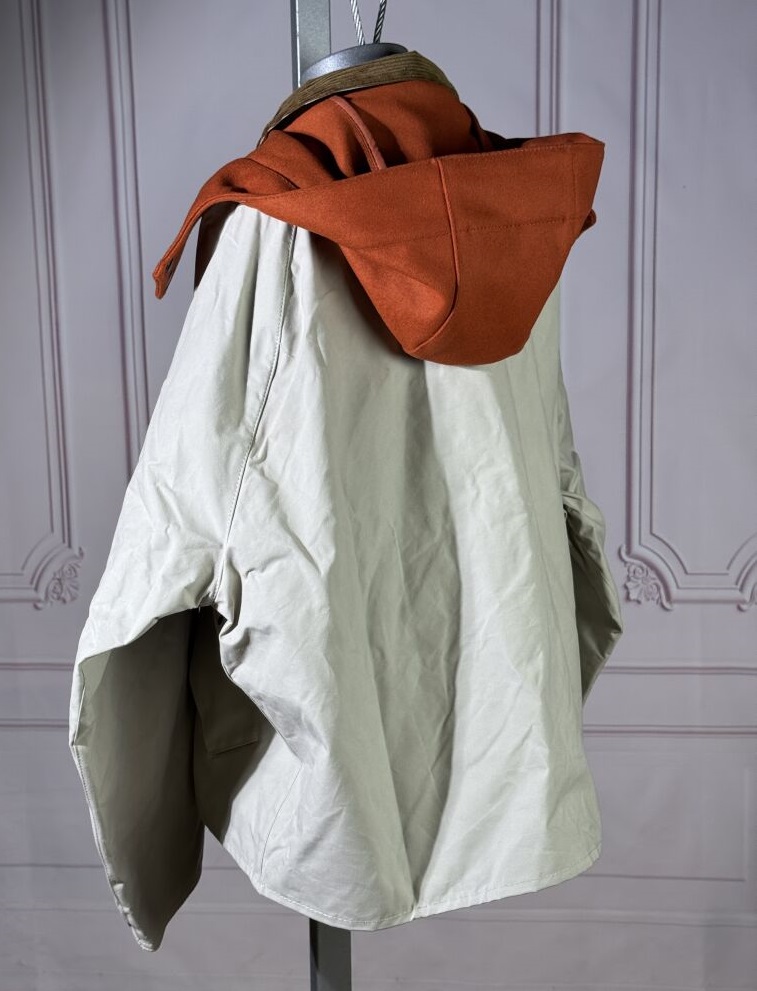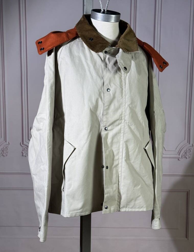BARBOUR - Veste modèle "Cruiser Casual Jacket", coton écru, col en velours côtelé brun, fermeture à glissière à double curseur sous patte à pressions, deux poches en biais, manches longues, capuche. Taille 42 Etat magasin