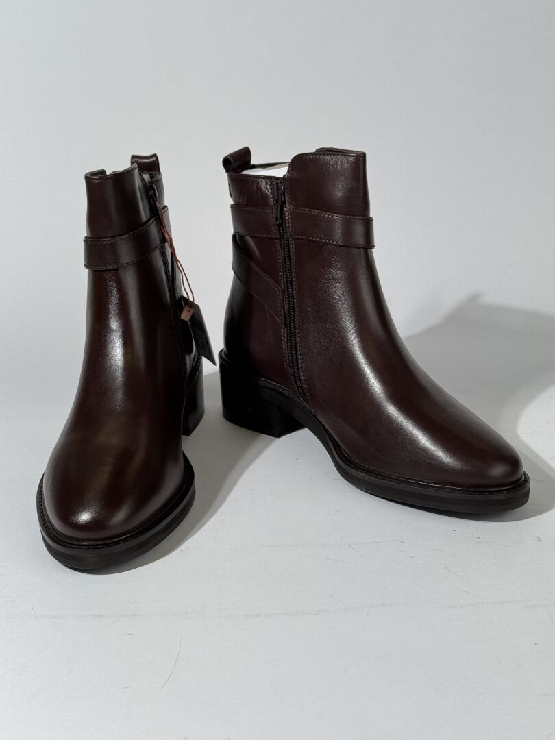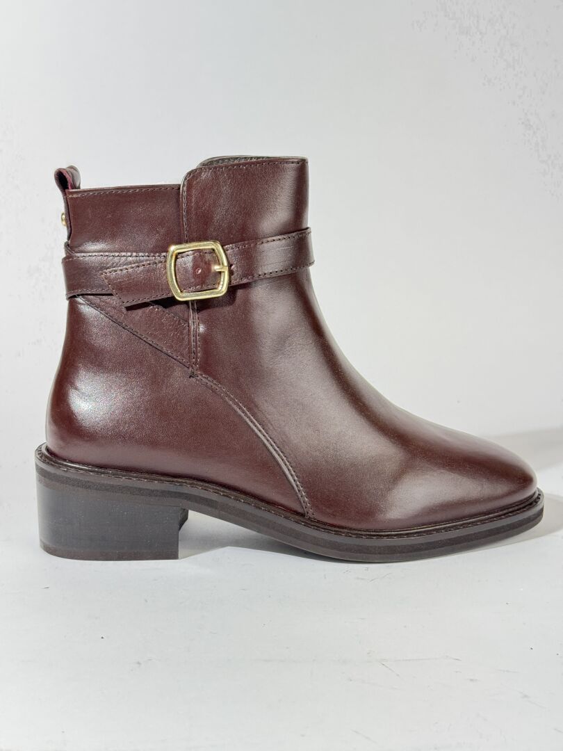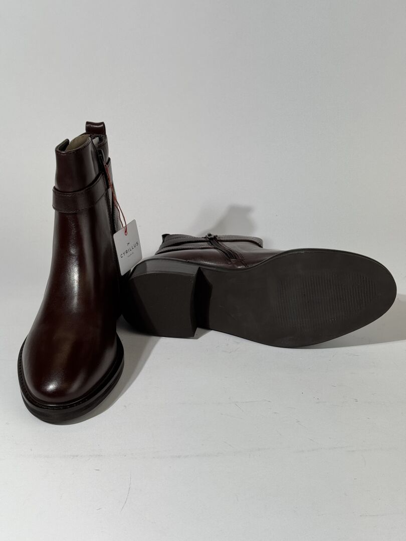 CYRILLUS - Paire de bottines cavalières en cuir marron, boucle métal doré. Boite. Pointure 39 Etat magasin