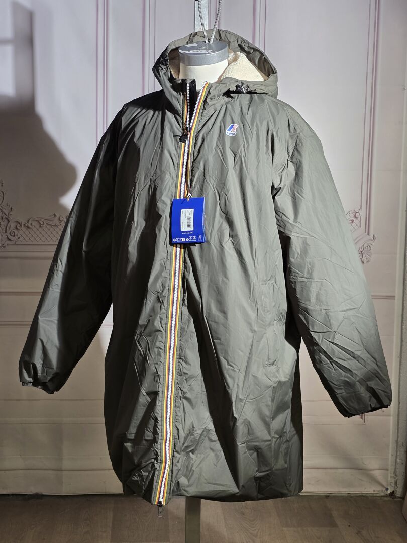 K-WAY - Imperméable modèle "Le Vrai 4.0 Eiffel East Orsetto", kaki, doublure, fermeture à glissière, manches longues, capuche. Taille XXL Etat magasin