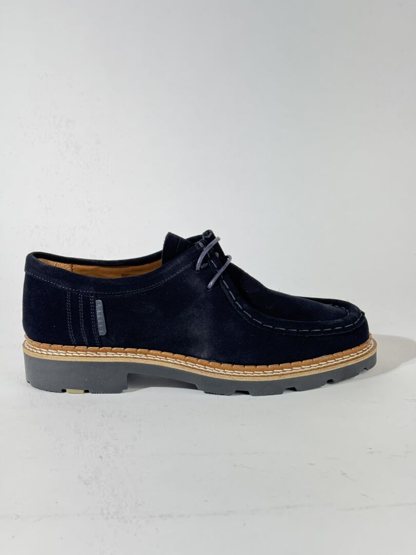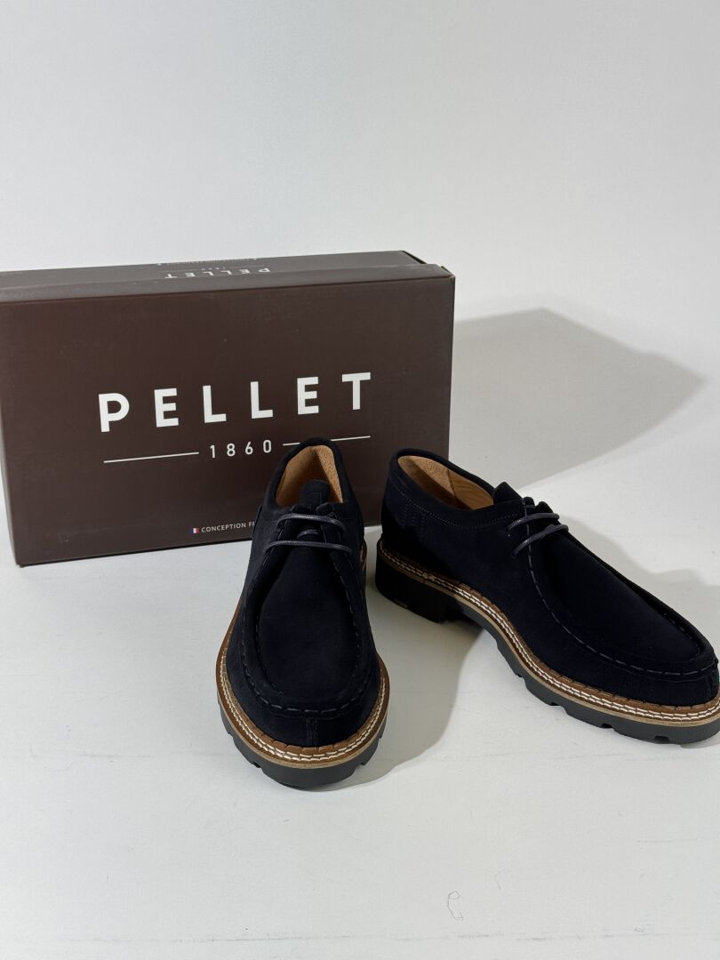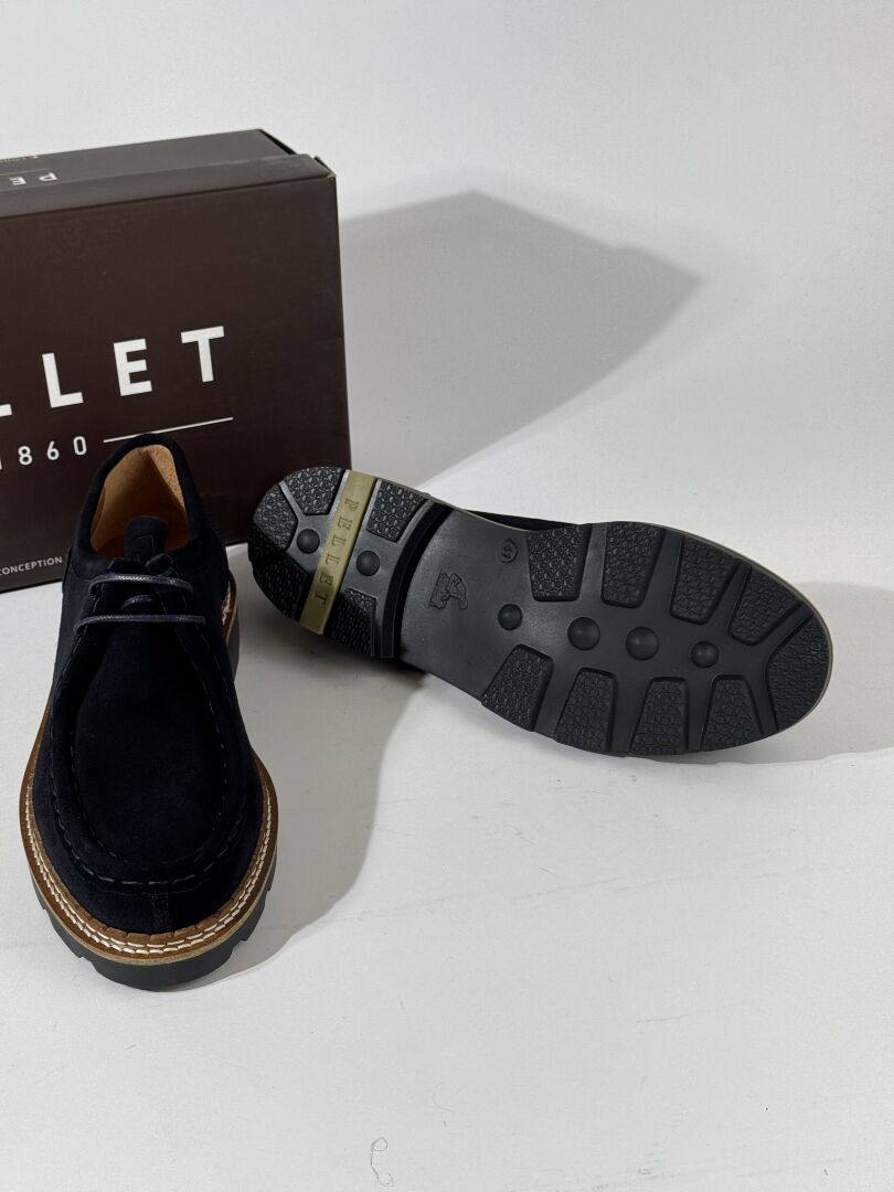 PELLET - Paire de chaussures, modèle "Macha", croute de velours marine, lacets. Boite. Pointure 41 Etat magasin
