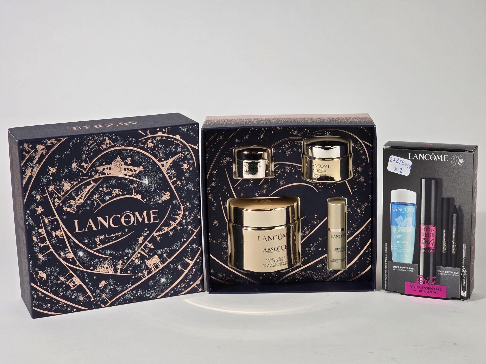 LANCOME - Coffret "Absolue" comprenant une crème fondante 60 ml, une crème riche 15 ml, un concentré intensif 5 ml, un soin regard 5 ml et un coffret maquillage comprenant un mascara noir et en format voyage un crayon yeux et un démaquillant