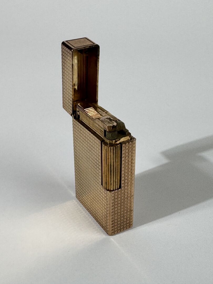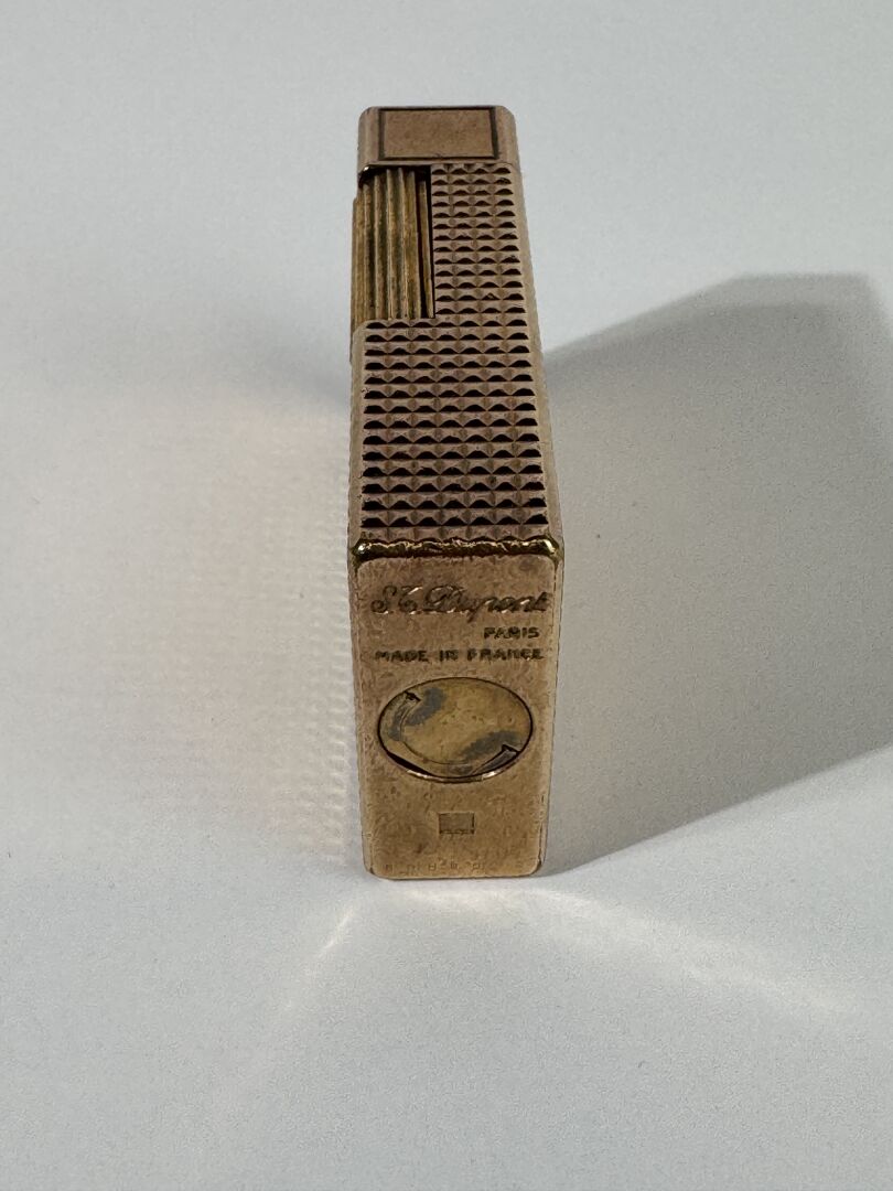 S.T DUPONT - Briquet en plaqué or guilloché. Signé Usures d'usage